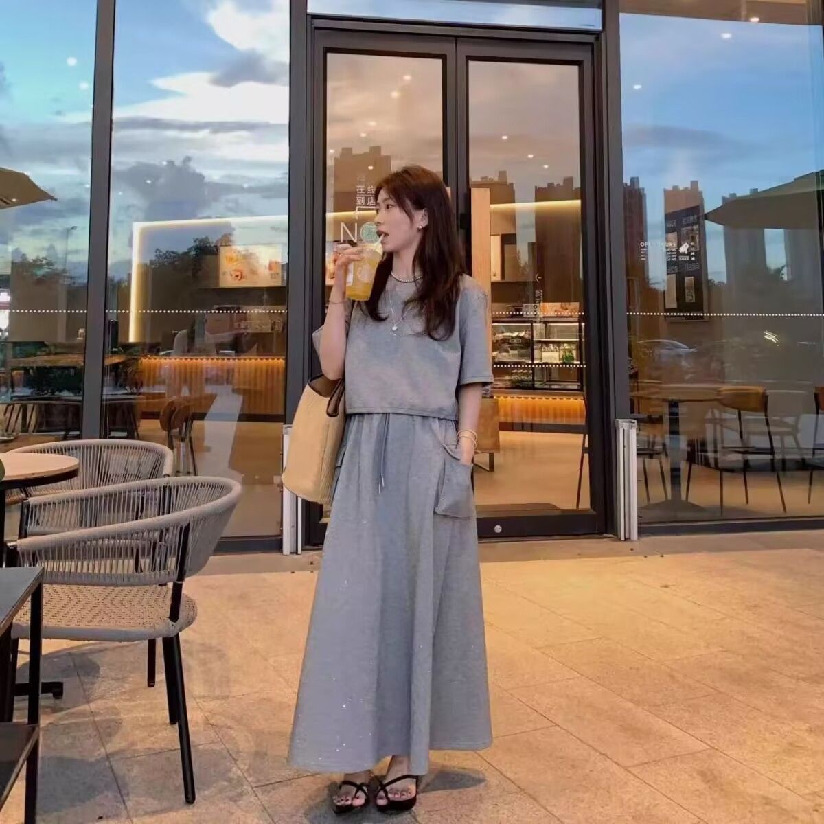 300斤大码休闲夏季新款显瘦胖MM套装女时尚显瘦减龄半身裙两件套