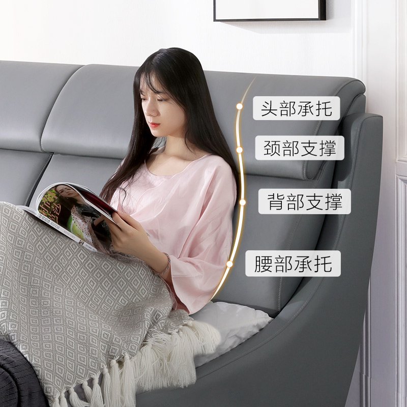 慕思真皮床主卧大床轻奢现代简约双人床欧式婚床功能床可调节
