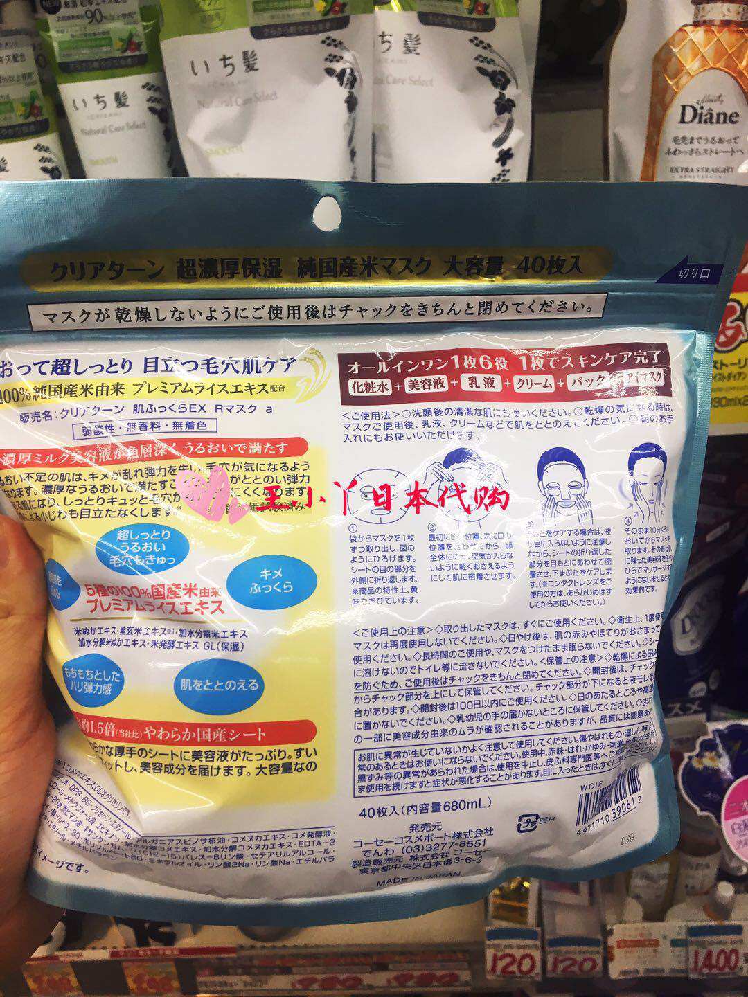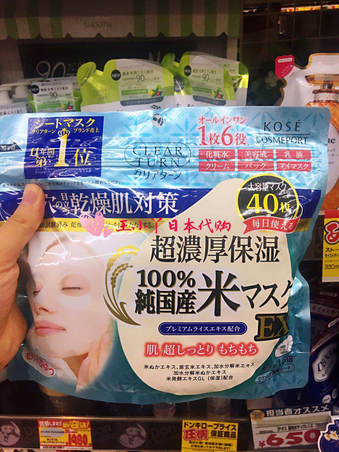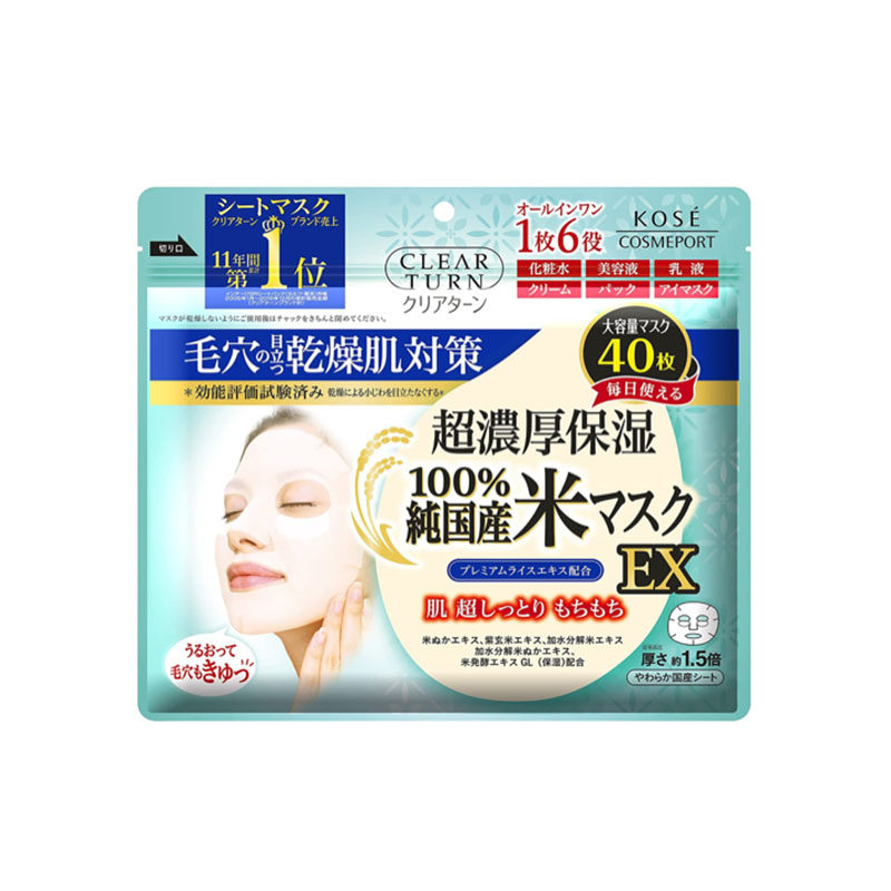 日本版KOSE高丝大米面膜40枚片超浓厚保湿大袋装六效合一亮白补水