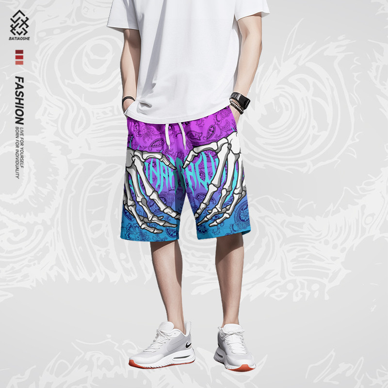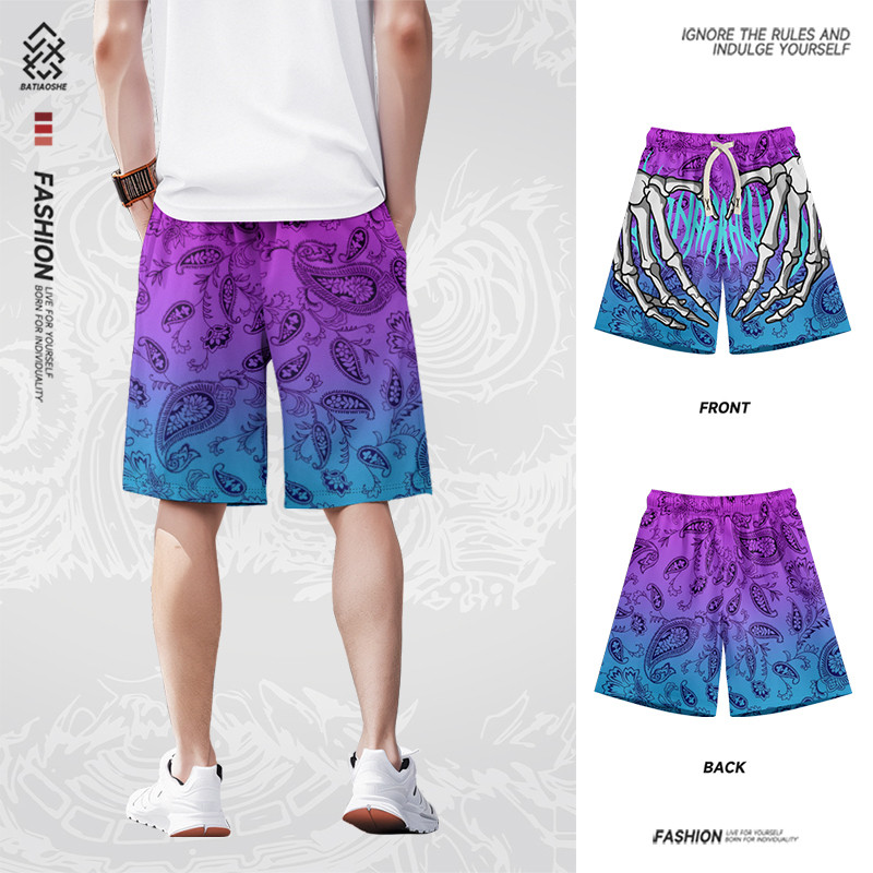 夏季新款美式潮流休闲短裤男士宽松速干沙滩裤直筒运动五分裤子男