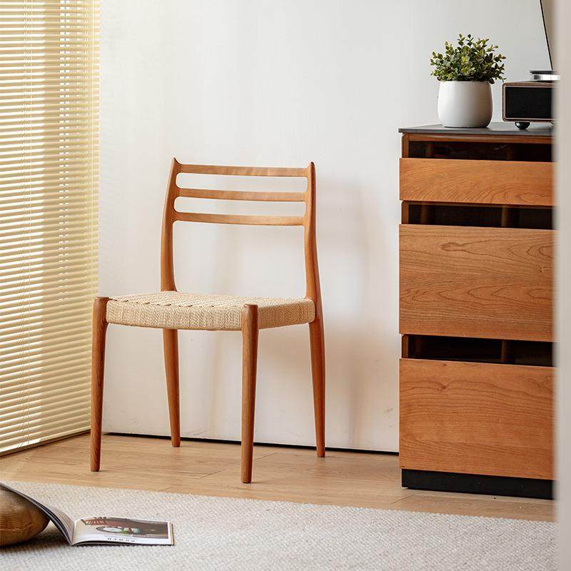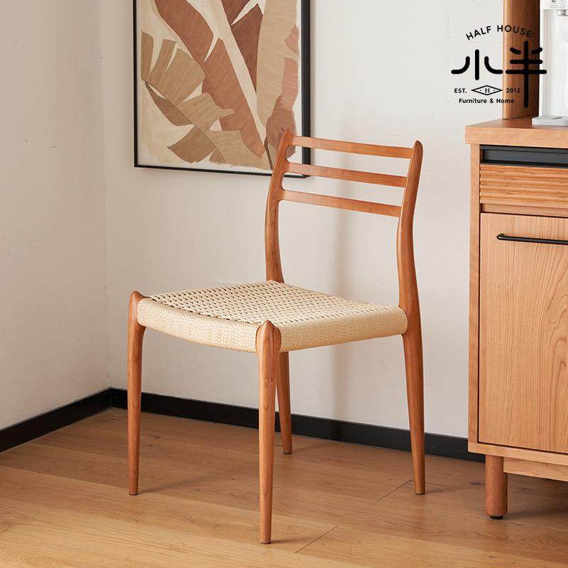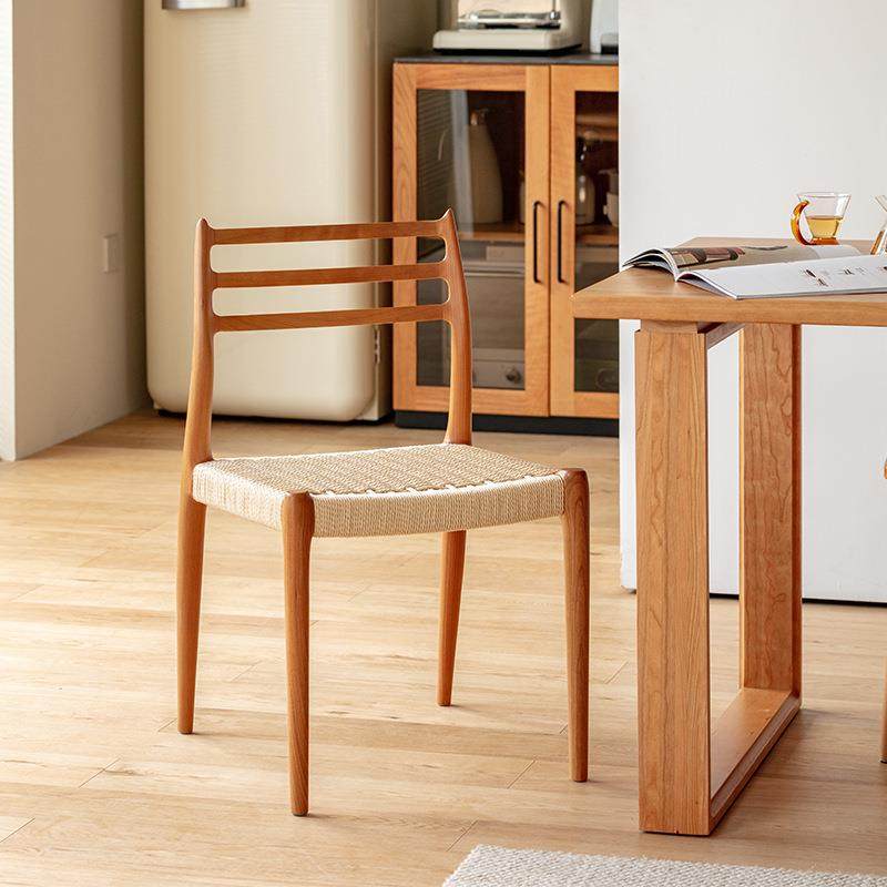欧拉家具北欧实木餐椅原木风藤编家用小户型日式复古樱桃木椅子
