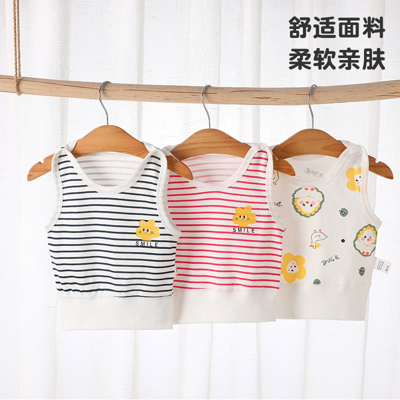 婧麒婴儿护肚背心春秋男宝宝女纯棉打底背心儿童无袖坎肩马甲上衣