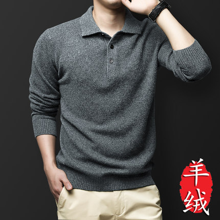 {含羊绒}品牌男polo衫精纺翻领加大码秋冬季商务休闲毛衣针织衫