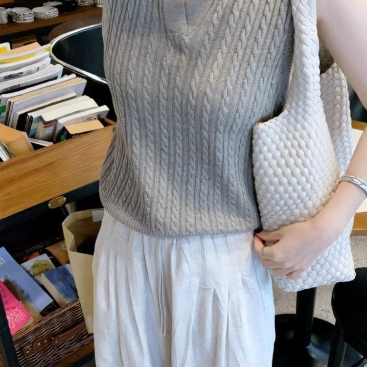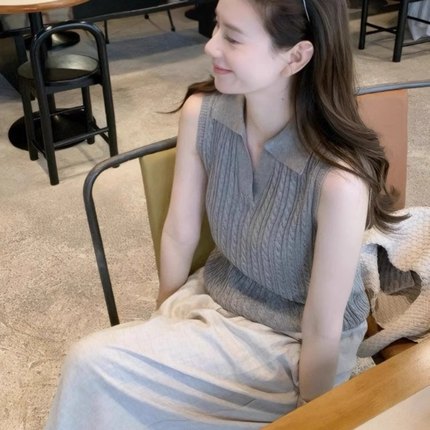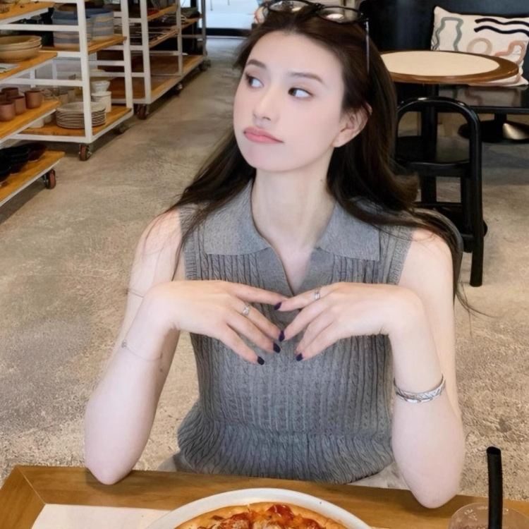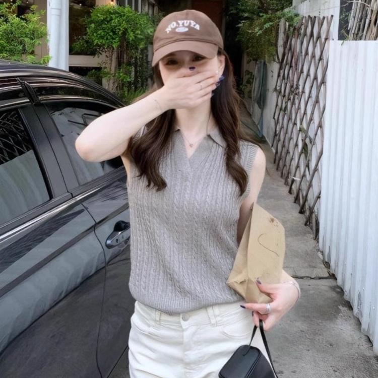 高级感灰色!麻花针织夏季冰丝polo领背心衫女精致超好看无袖上衣