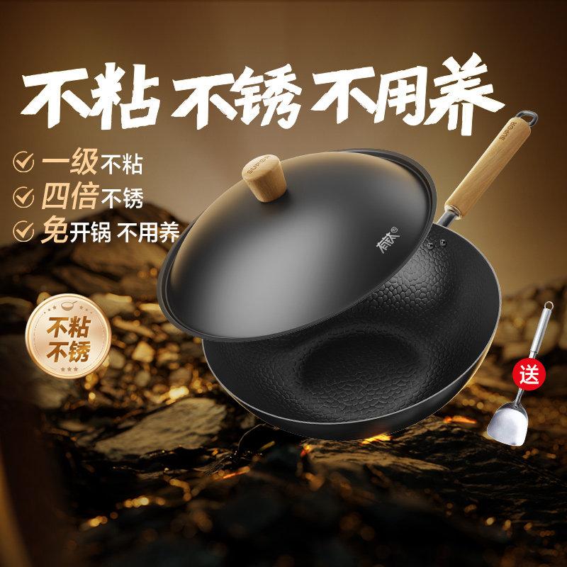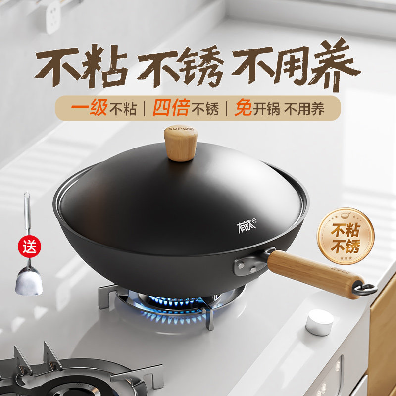苏泊尔铁锅有钛不粘锅炒锅家用炒菜锅无涂层燃气灶电磁炉燃气通用