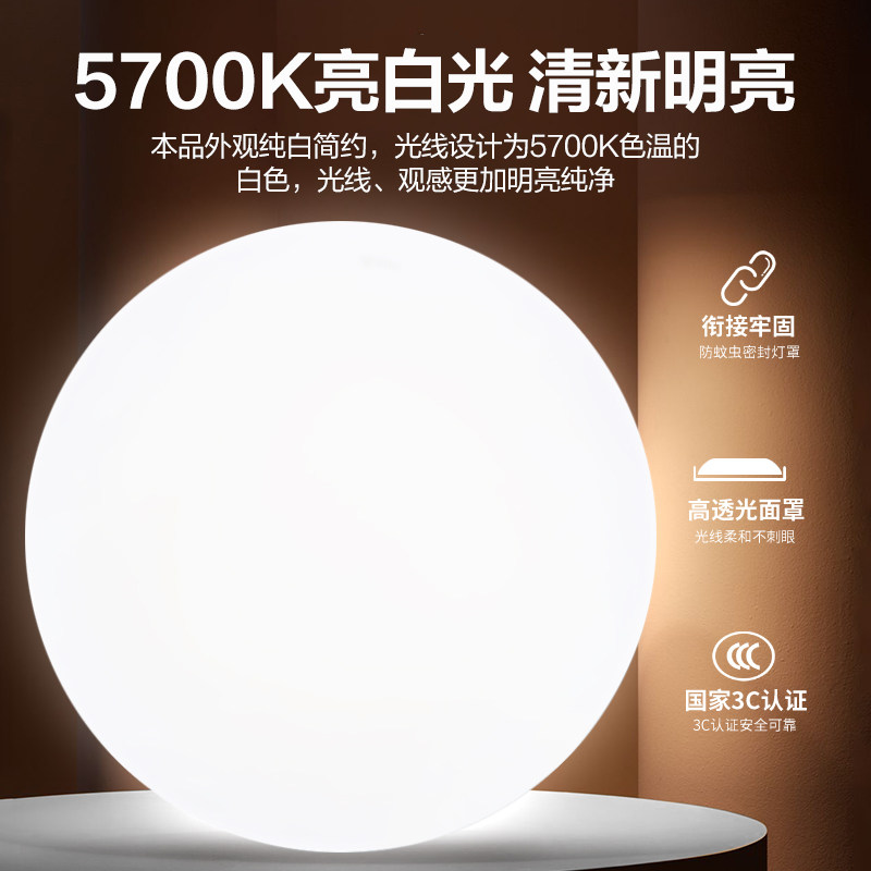 公牛旗舰店led阳台面包吸顶灯圆形简约过道厕所厨房卫生间卧室灯