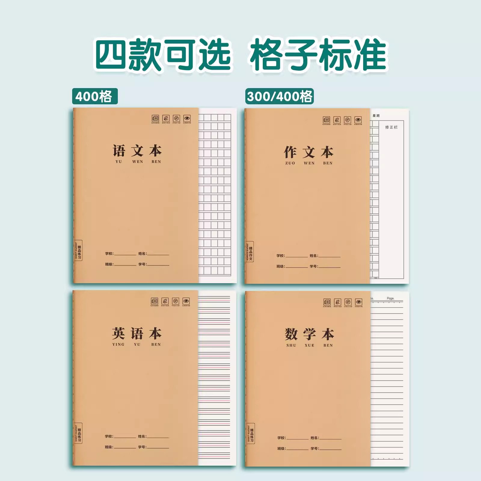 语文本三到六年级16k开作业本小学生初中高中生专用大本子一二四五年级方格本练习簿薄牛皮纸统一标准版批发