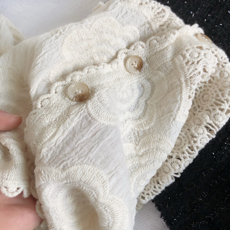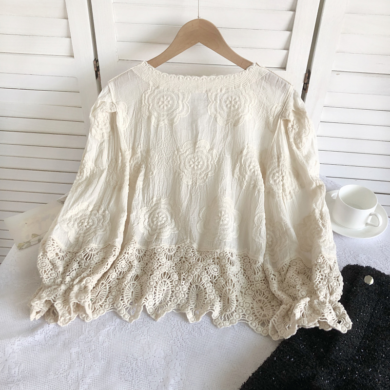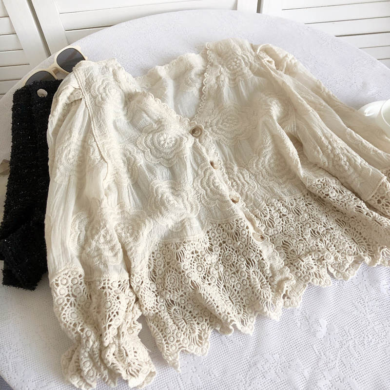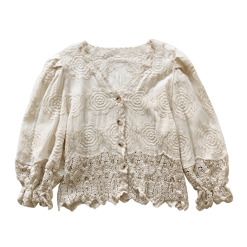 宽松复古单排扣长袖镂空钩花衬衫