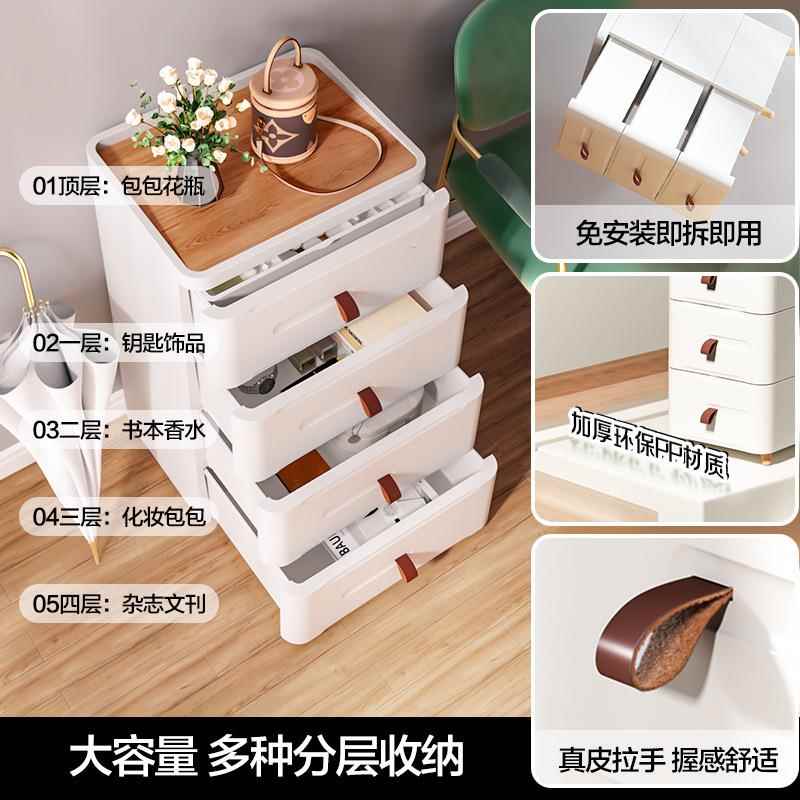 格美居床头柜抽屉式收纳柜夹缝储物柜塑料家用多层客厅卧室置物柜