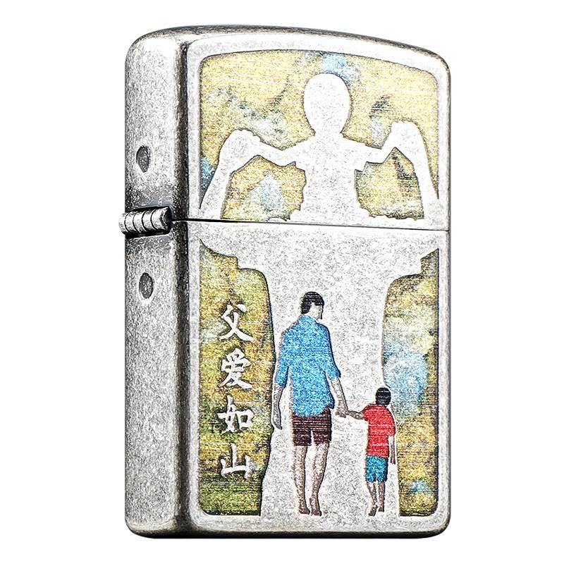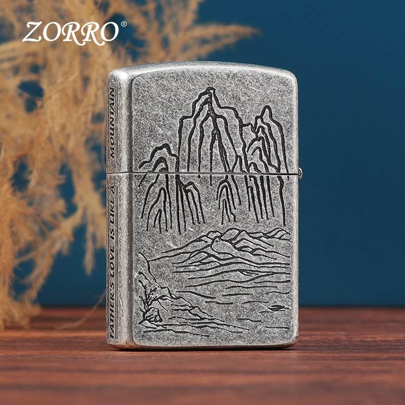 ZORRO 佐罗 仿古银父爱如山煤油防风打火机 蚀刻彩绘老式复古砂轮