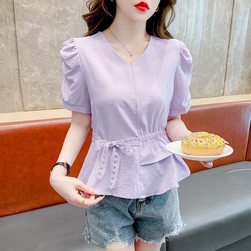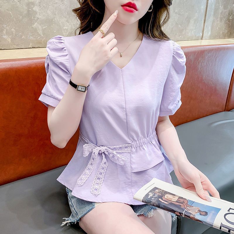 2025夏季新款法式双层荷叶边蕾丝绑带时尚洋气修身衬衫超仙上衣
