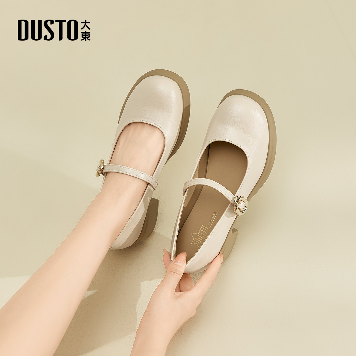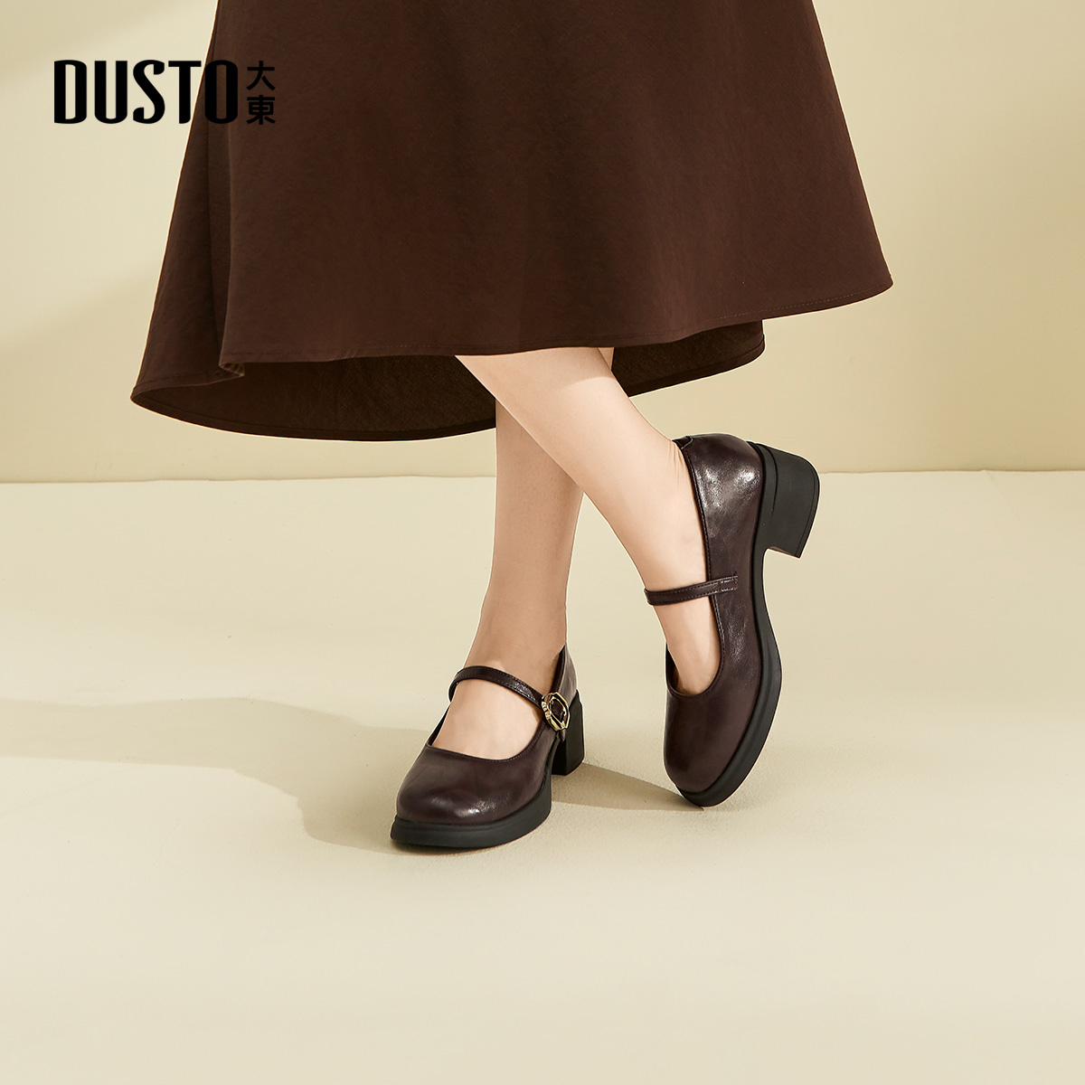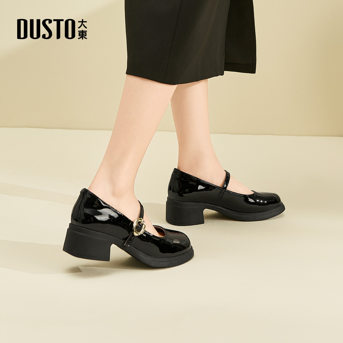 大东玛丽珍鞋女鞋2025秋季新款简约粗跟一字扣小皮鞋圆头女单鞋