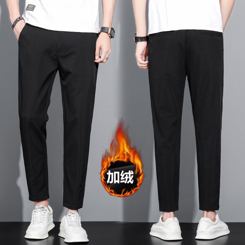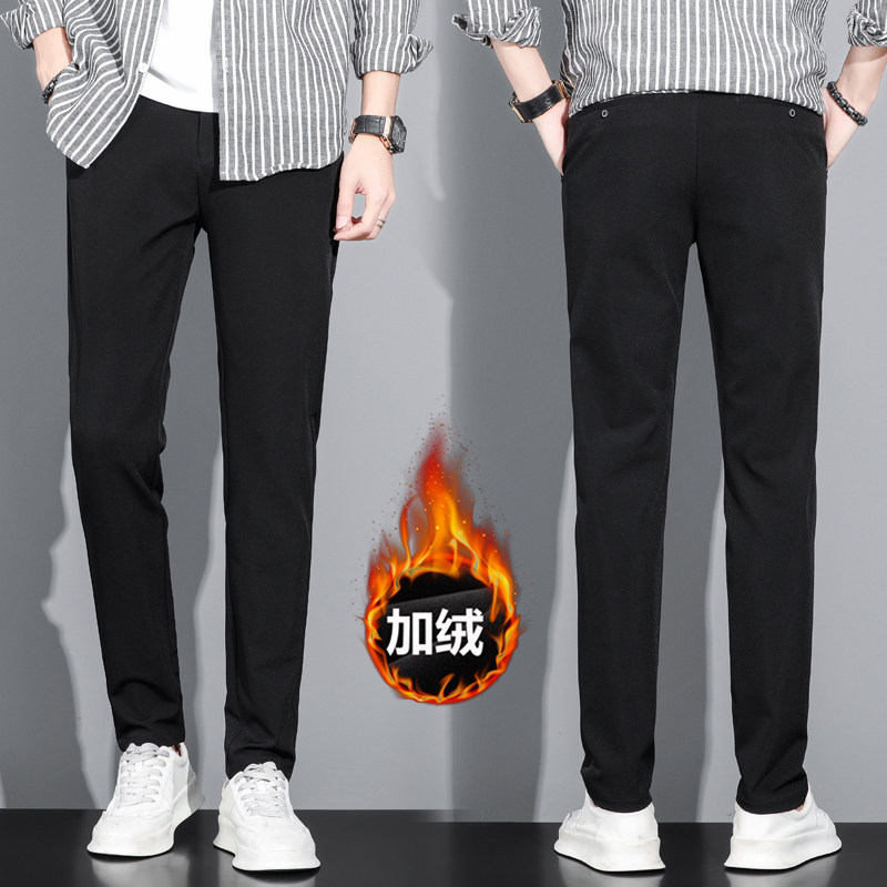 秋冬休闲长裤男士修身弹力紧身黑色小脚裤子男西装裤免烫上班显瘦