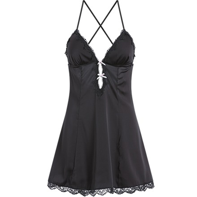 性感睡衣女款夏季2025年新款镂空诱惑交叉露背冰丝吊带睡裙带胸垫
