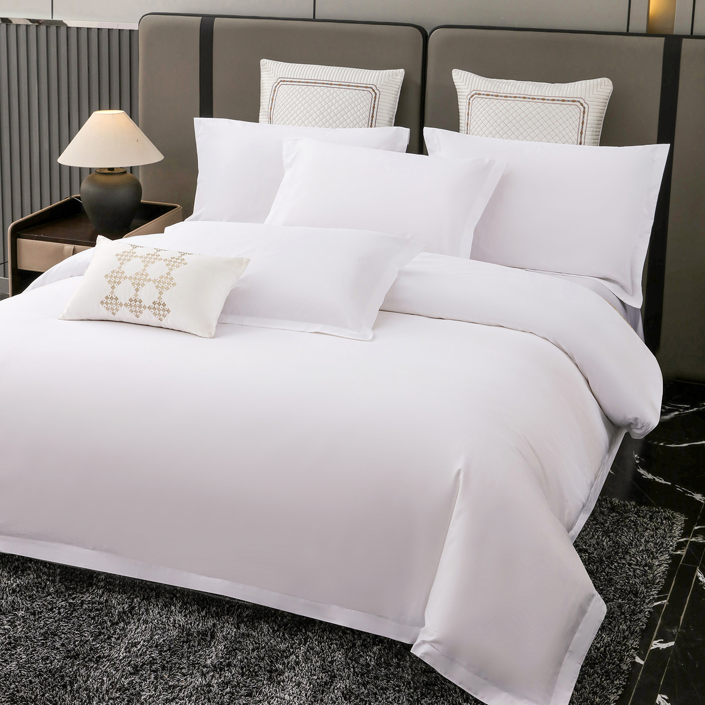 五星级酒店床上用品四件套纯棉宾馆床单被套白色布草被罩民宿专用