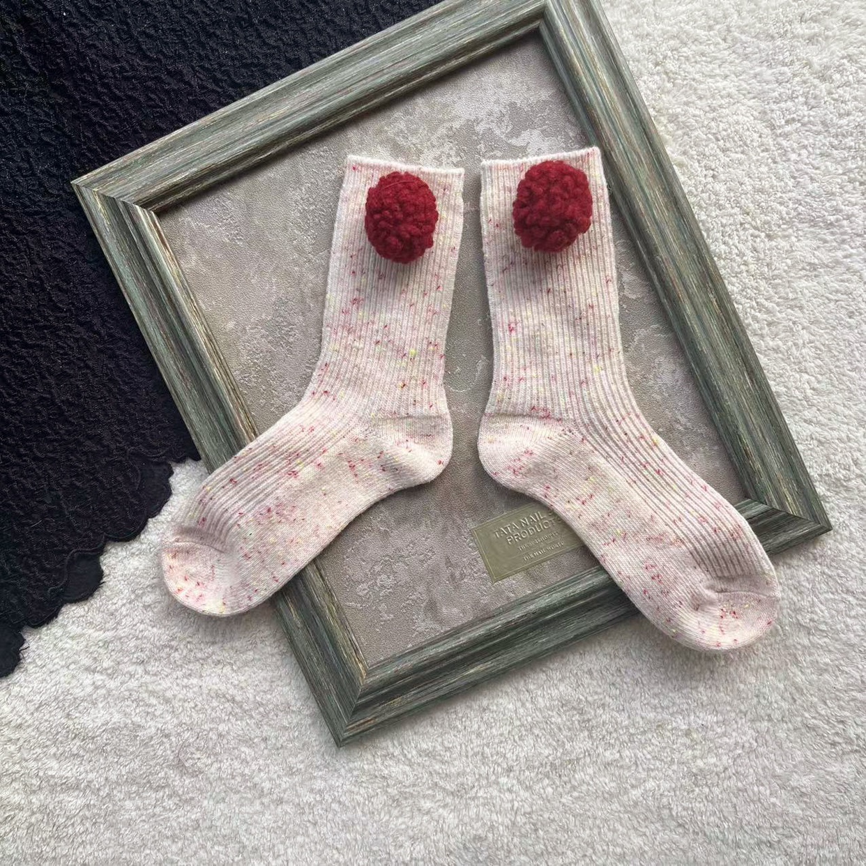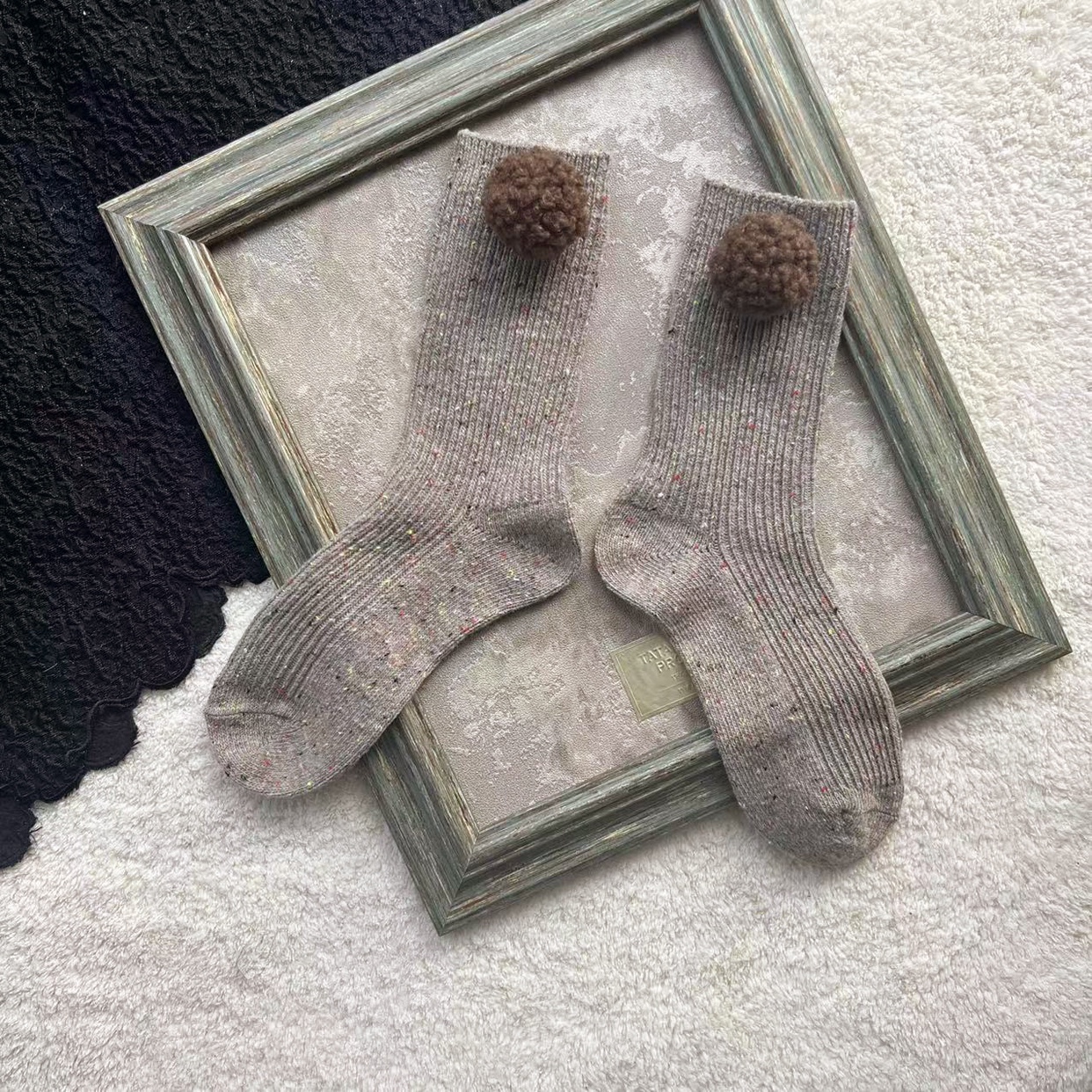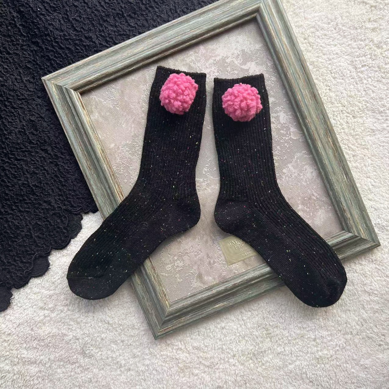 羊羔毛球短袜点子纱羊毛袜子彩色毛球中筒袜韩版秋冬百搭可爱女袜