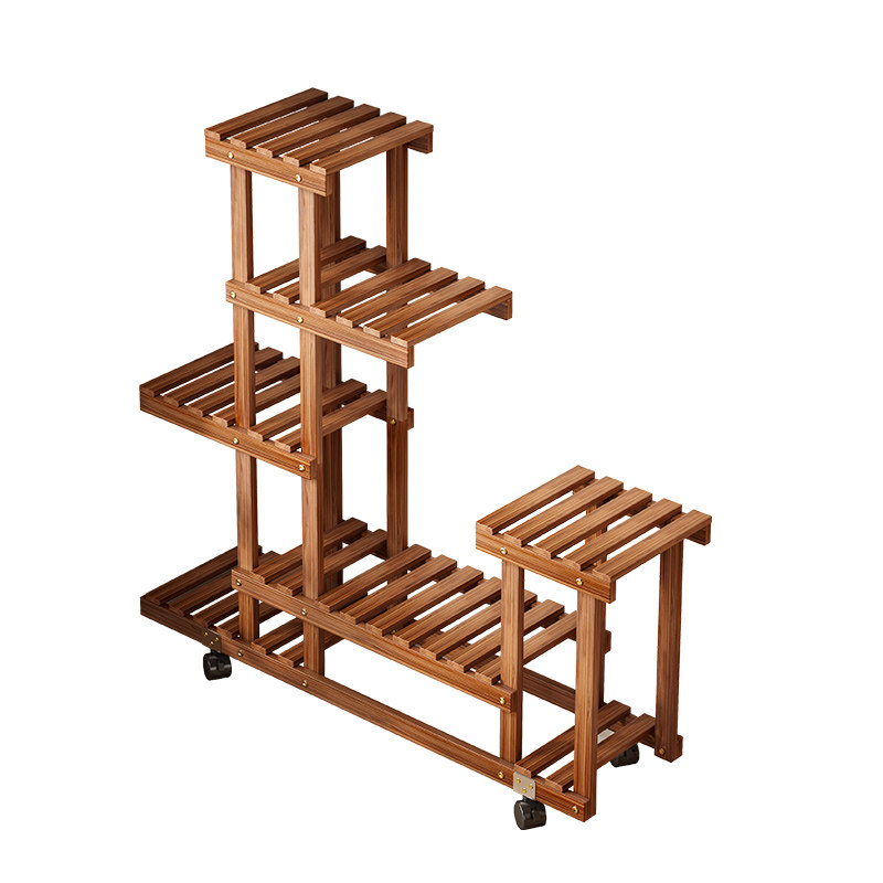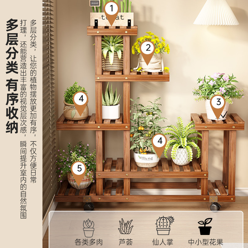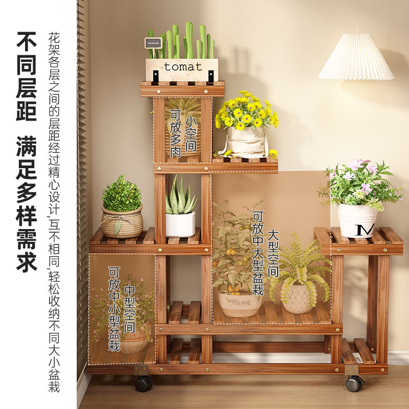 阳台防腐实木质花架子客厅多层落地可移动多肉花盆植物置物架猫爬