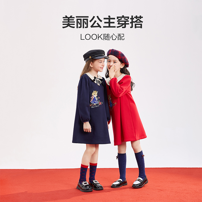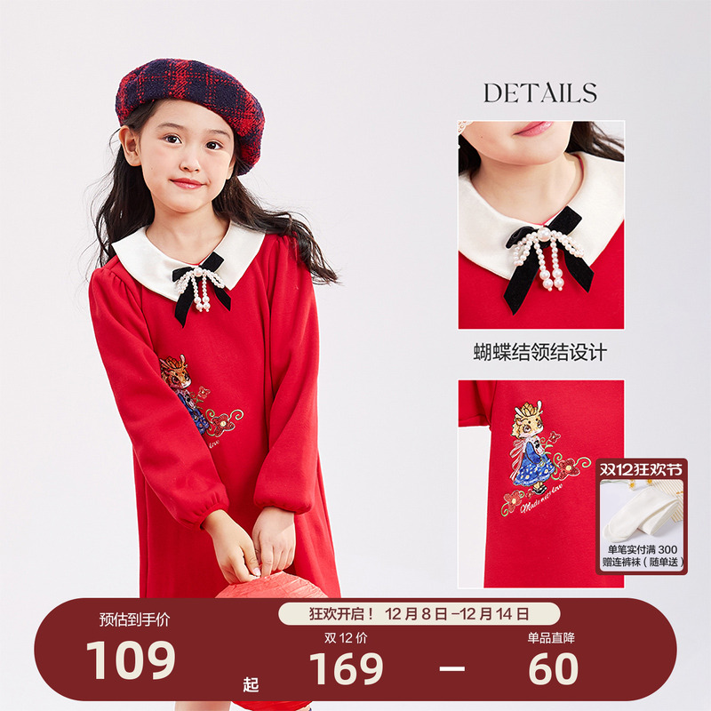 笛莎官方童装女童连衣裙冬季新款大童女孩儿童新年款拜年洋气裙子