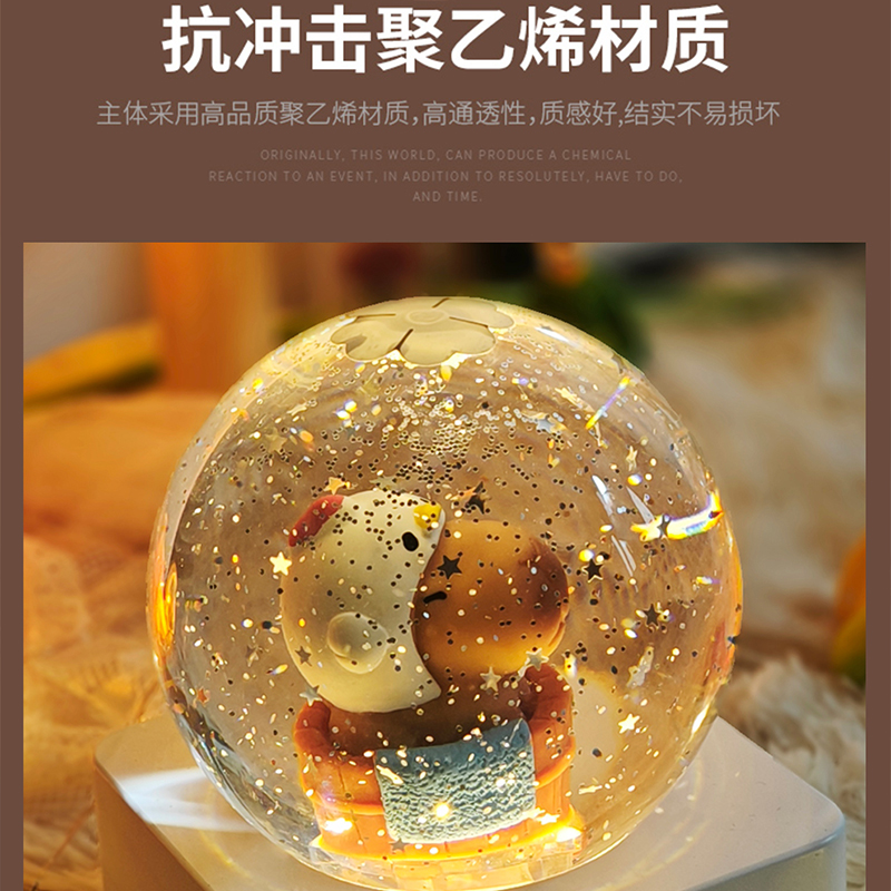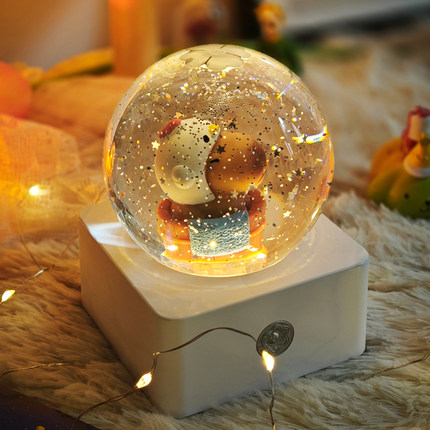 卡皮巴拉水晶球音乐盒水豚灯生日礼物女生闺蜜女朋友可爱桌面摆件
