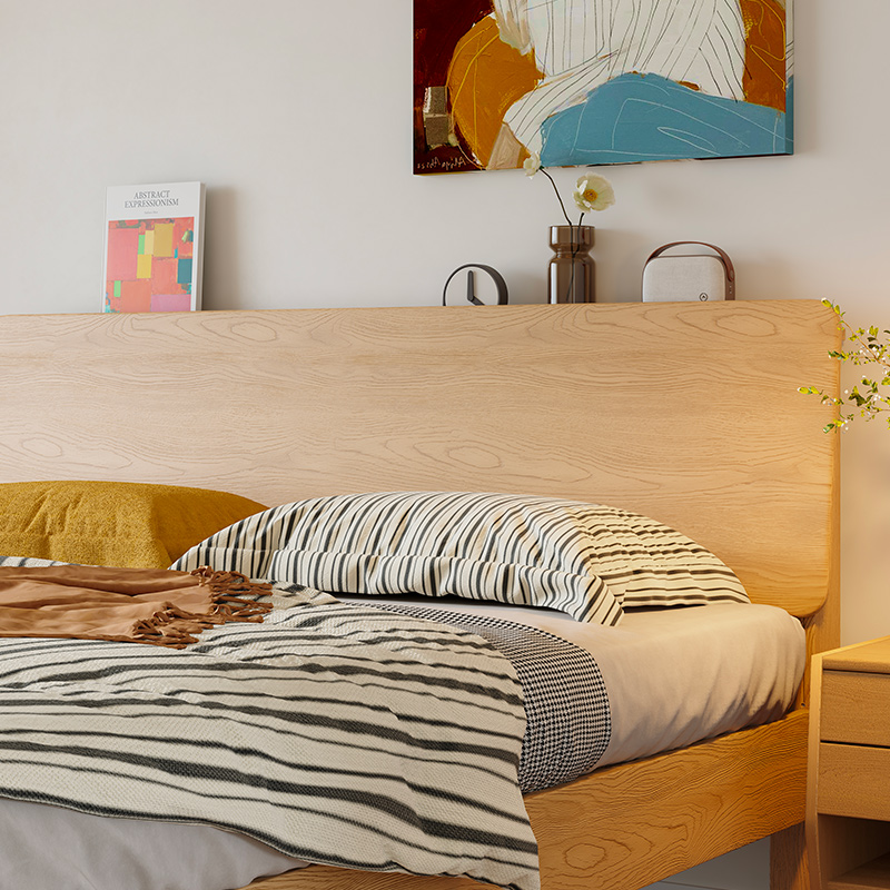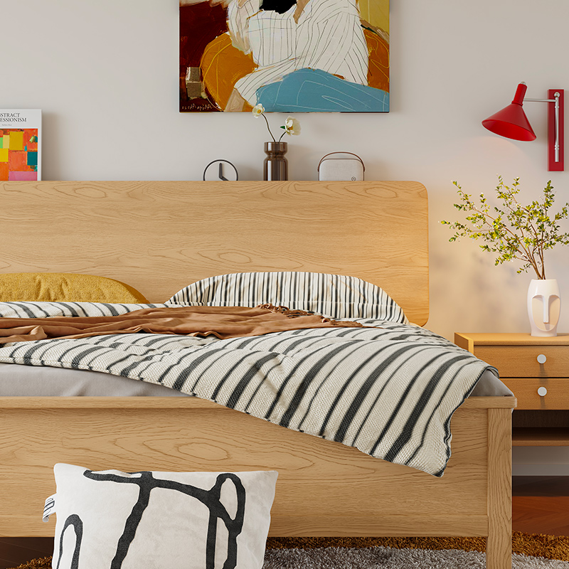 曲美家居床 中古风实木床双人床家用小户型简约卧室床 木屿实木床