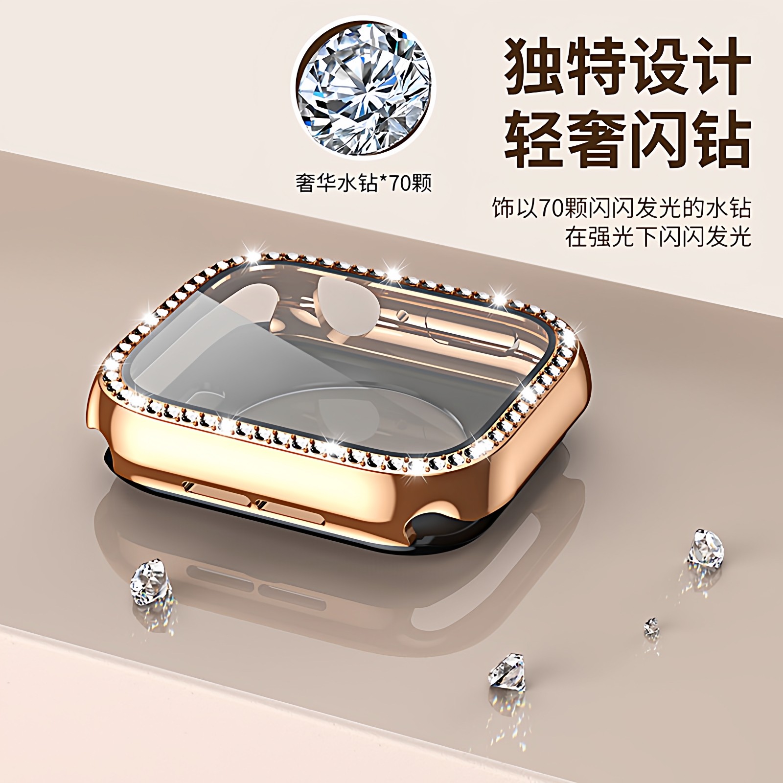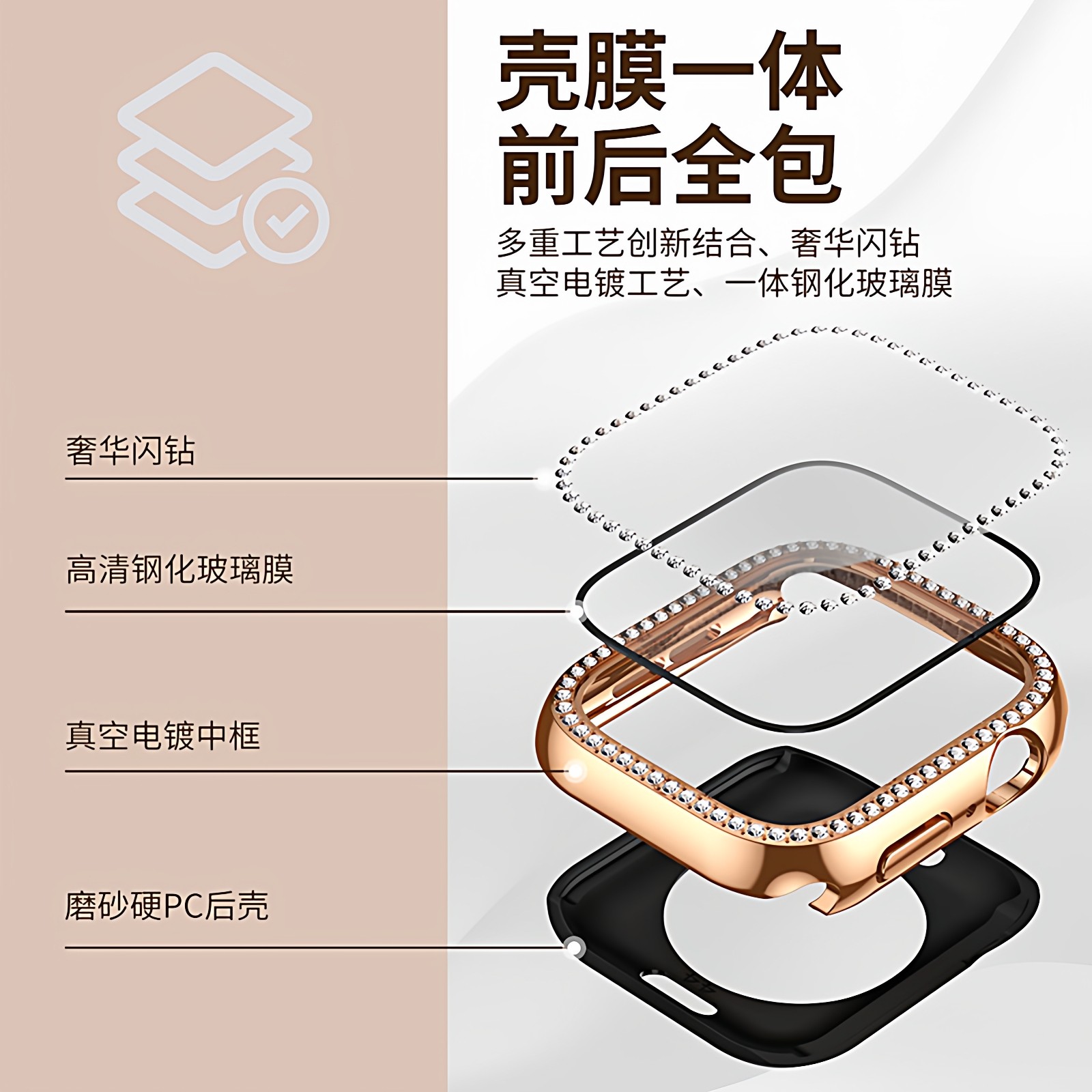 适用苹果手表10ultra全包钢化膜保护壳iWatch98765se11钻石屏保膜