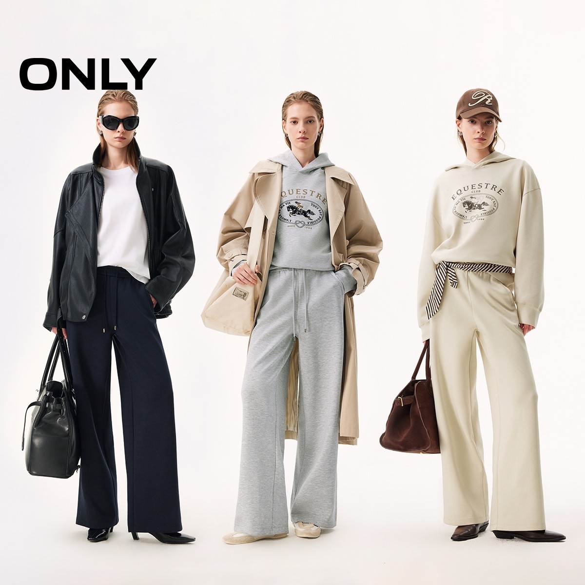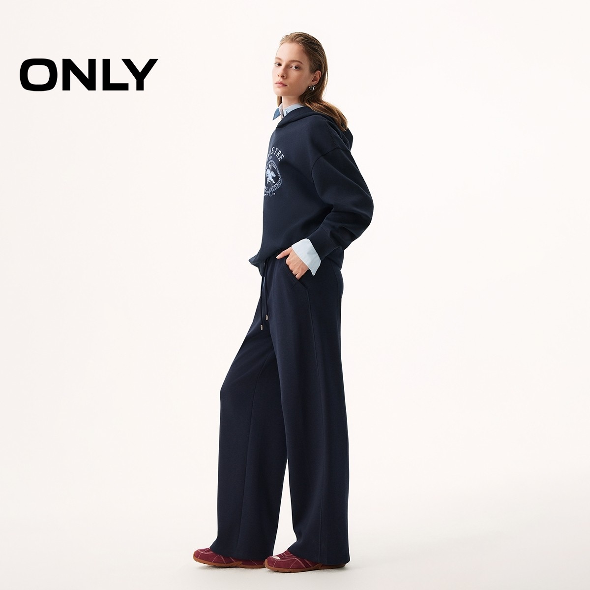ONLY2026春季新款弹力松紧腰头设计简约纯色阔腿长裤休闲裤女