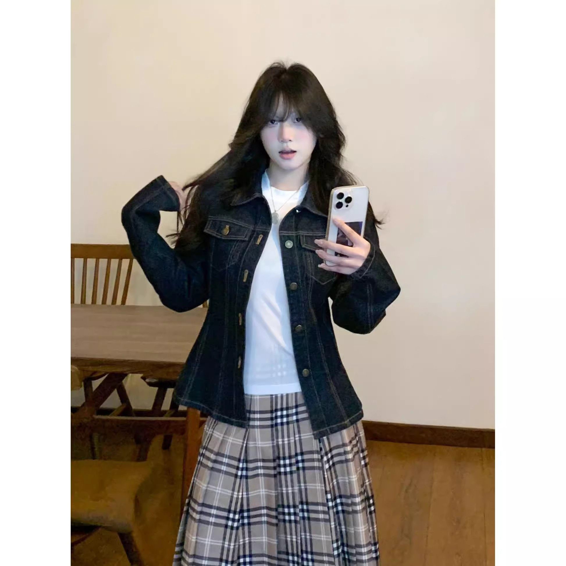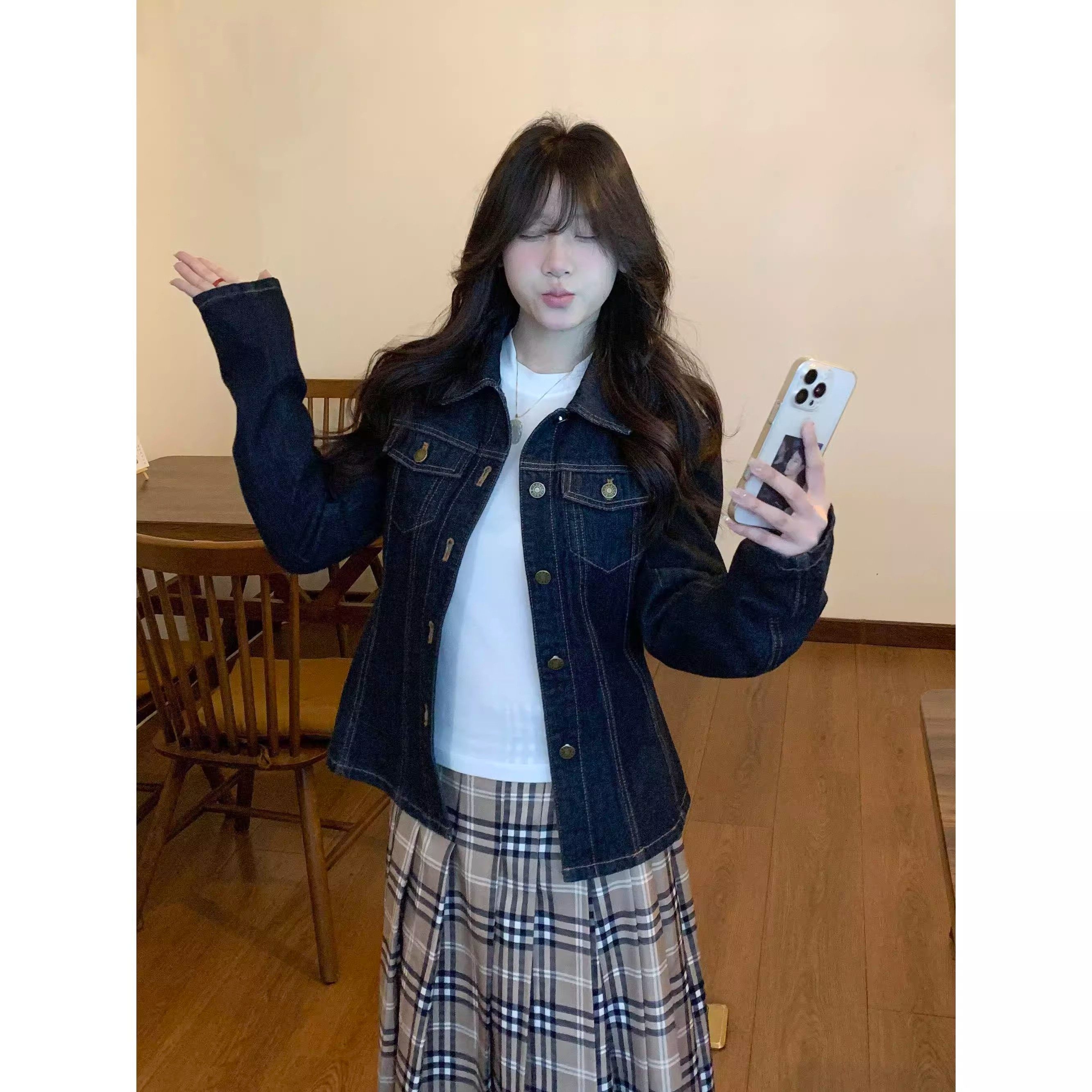 美式复古蓝色牛仔外套女2025新款秋季休闲翻领小个子短款夹克上衣
