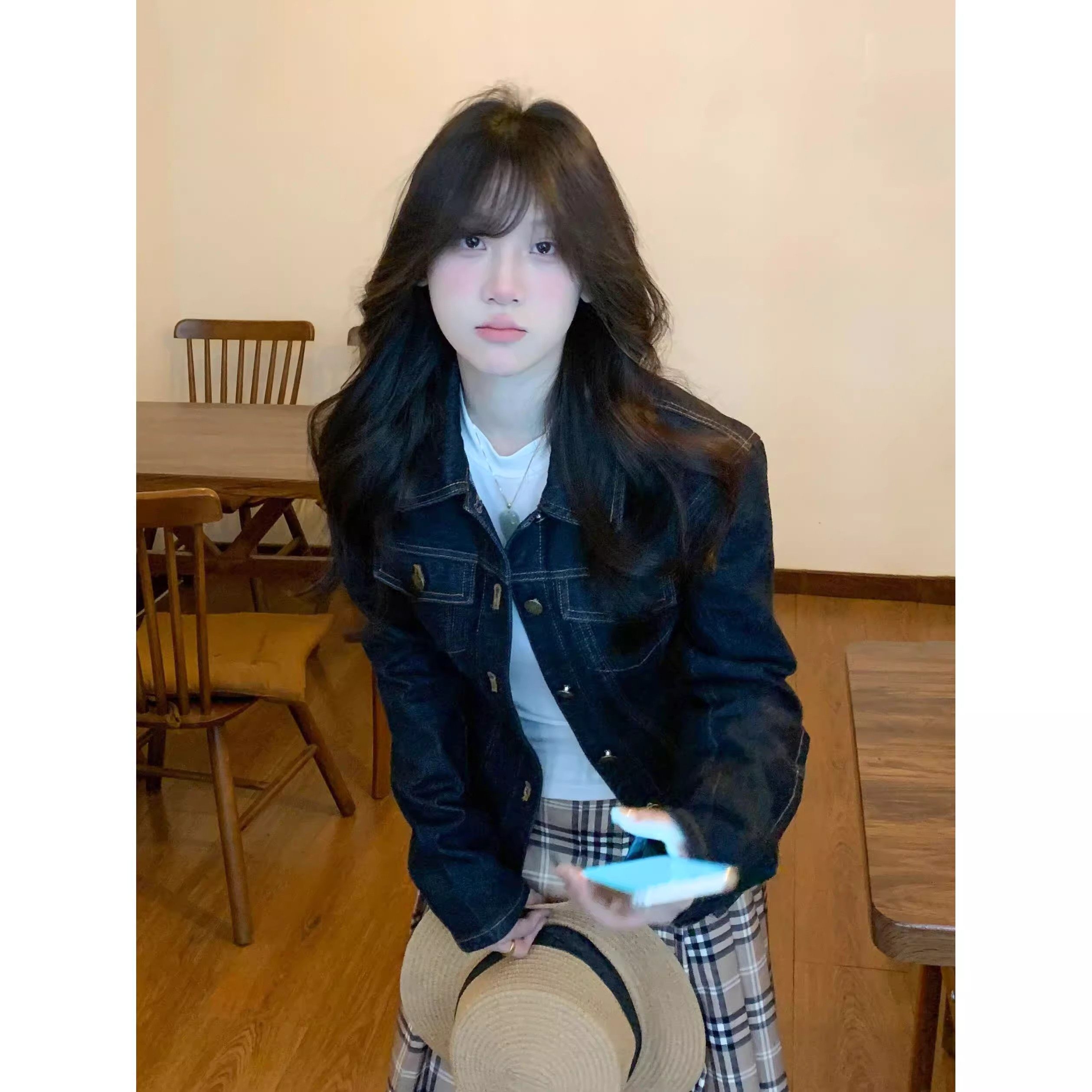 美式复古蓝色牛仔外套女
