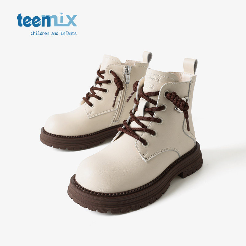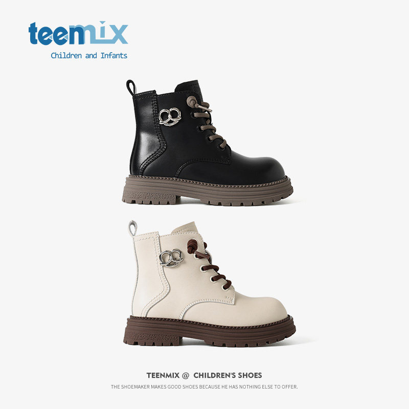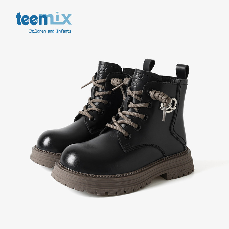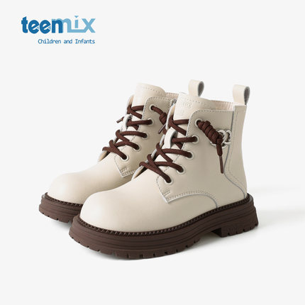 天美意童鞋女童皮靴子2026春秋季新款宝宝靴子短儿童马丁靴大童