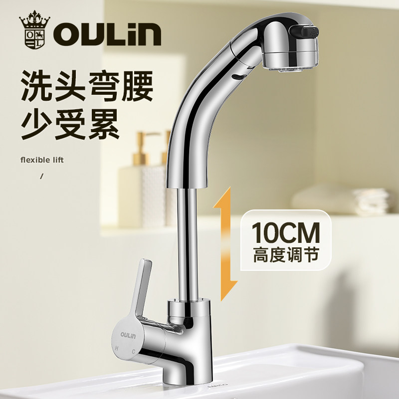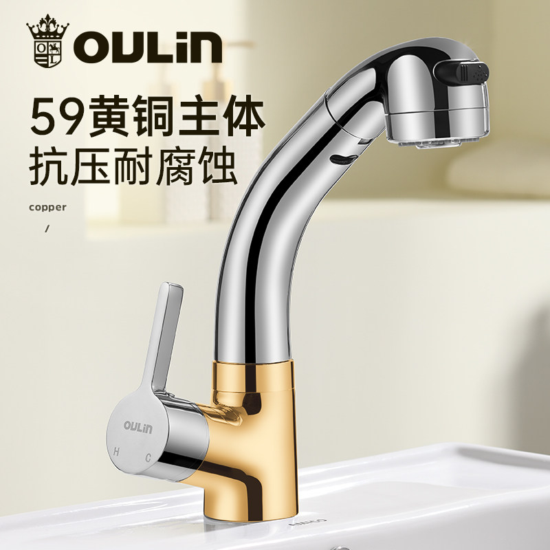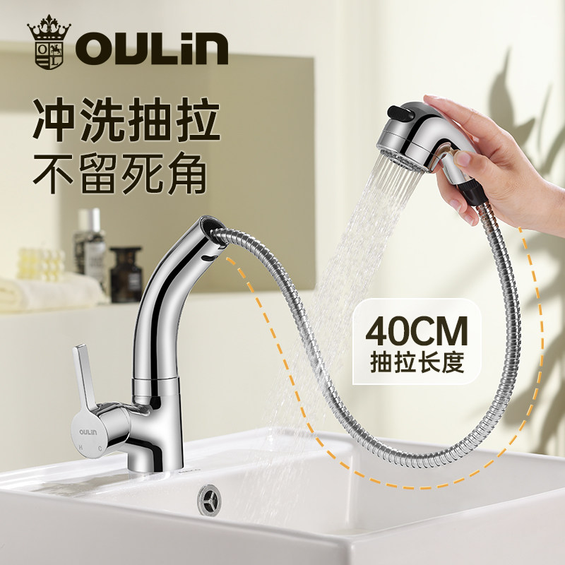 欧琳抽拉式可旋转台盆冷热水龙头