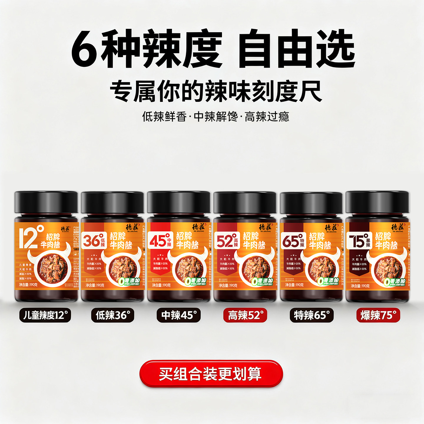 德庄牛肉酱全辣度招牌牛肉香辣酱拌饭拌面下饭菜辣椒酱官方旗舰店