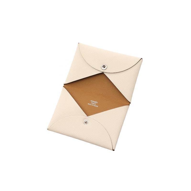 中古Hermes爱马仕女A级95新coin case零钱包牛皮零钱包浅褐色