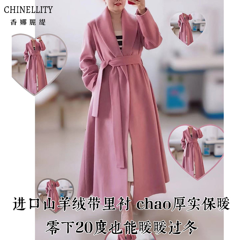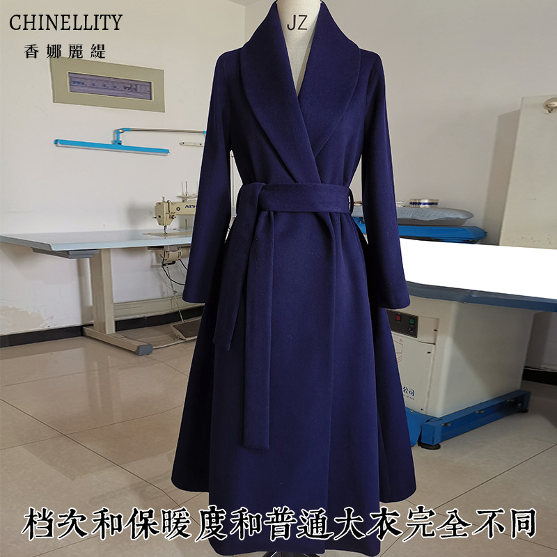 进口山羊绒大衣女带里衬4.5米用料大摆长款黑色高端毛呢外套冬新