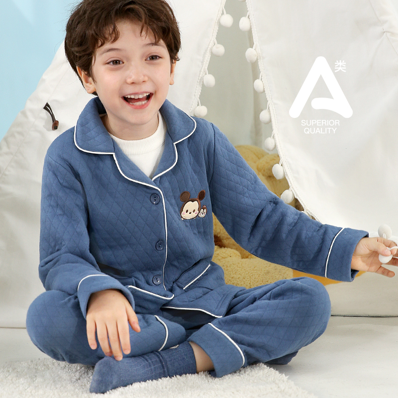 迪士尼儿童睡衣秋冬女童全棉套装夹棉女孩居家男童宝宝睡裤家居服
