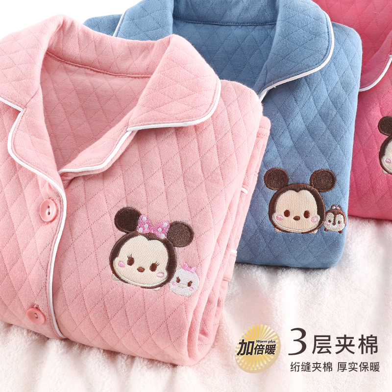 迪士尼全棉睡衣夹棉秋冬季家居服
