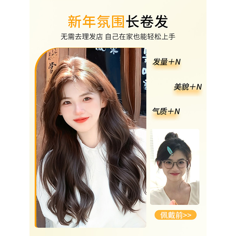 假发女长发轻薄款三片式仿真发大波浪长卷发蓬松增发量无痕接发片