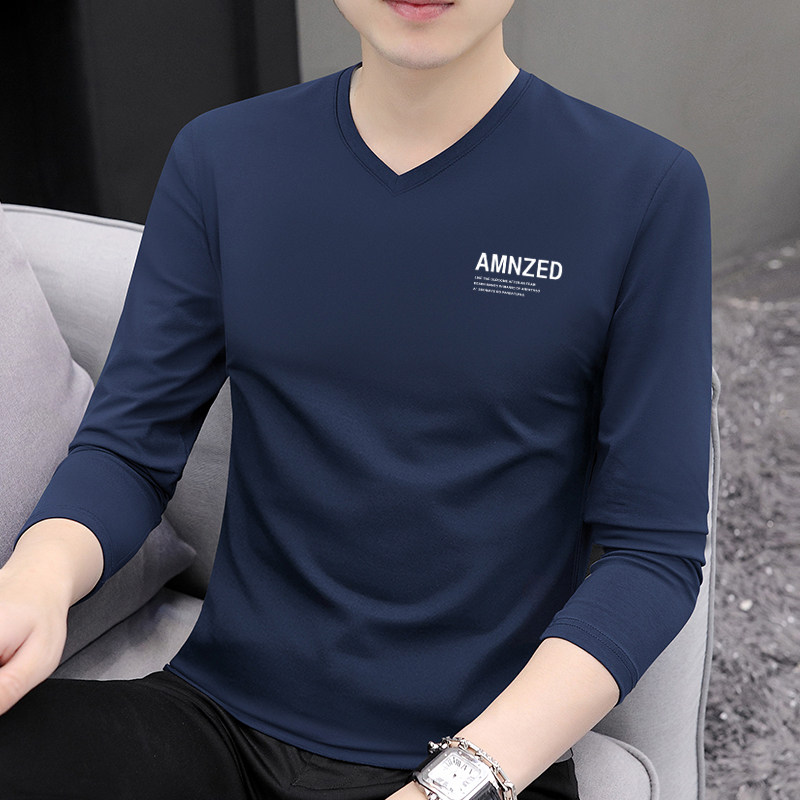长袖t恤男士秋冬纯棉v领打底衫