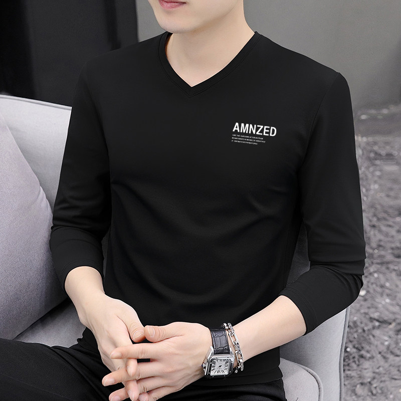 莫代尔长袖t恤男士秋冬纯棉v领打底衫修身潮流内衣内搭打底衫体恤