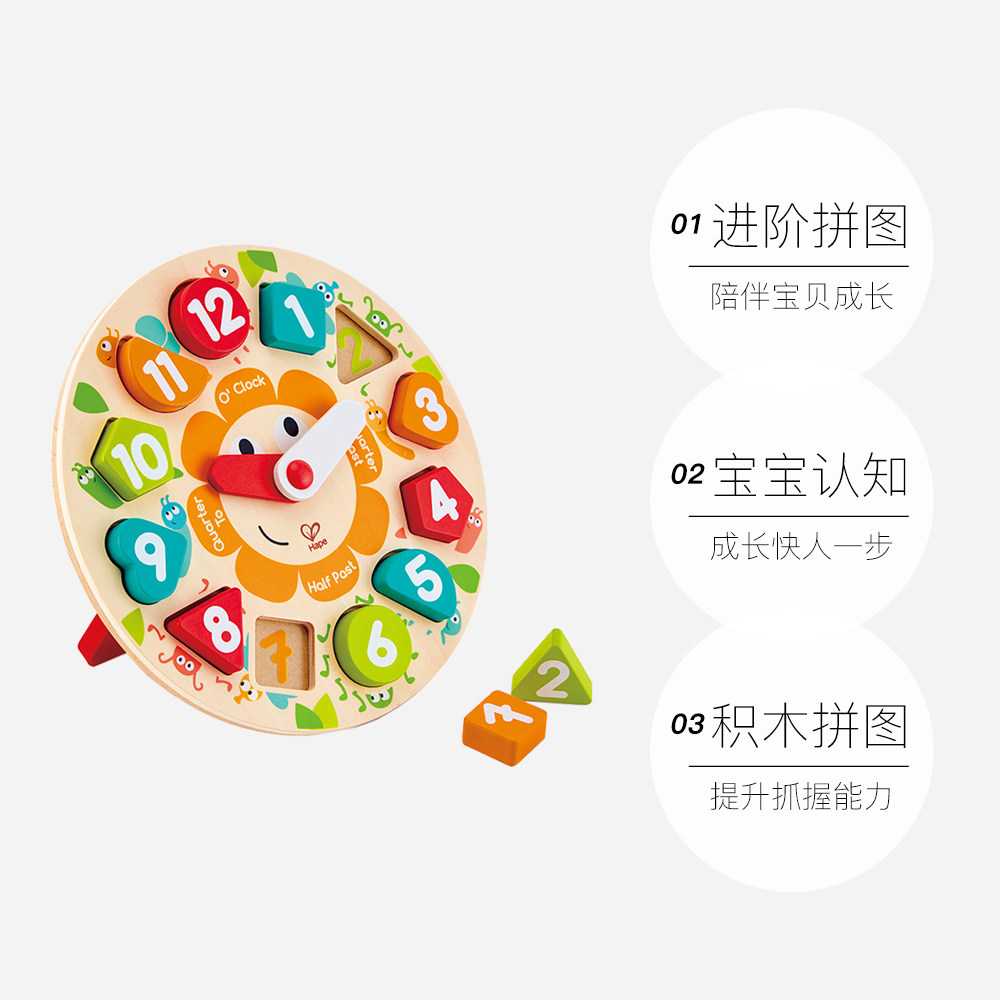 【自营】德国Hape积木时钟数字拼图小抓板儿童早教益智力宝宝玩具
