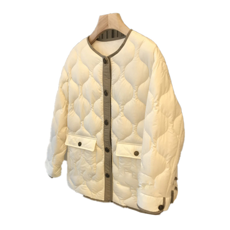 小香风羽绒服菱格高端90白鸭绒轻薄白色女款2025短款女士外套