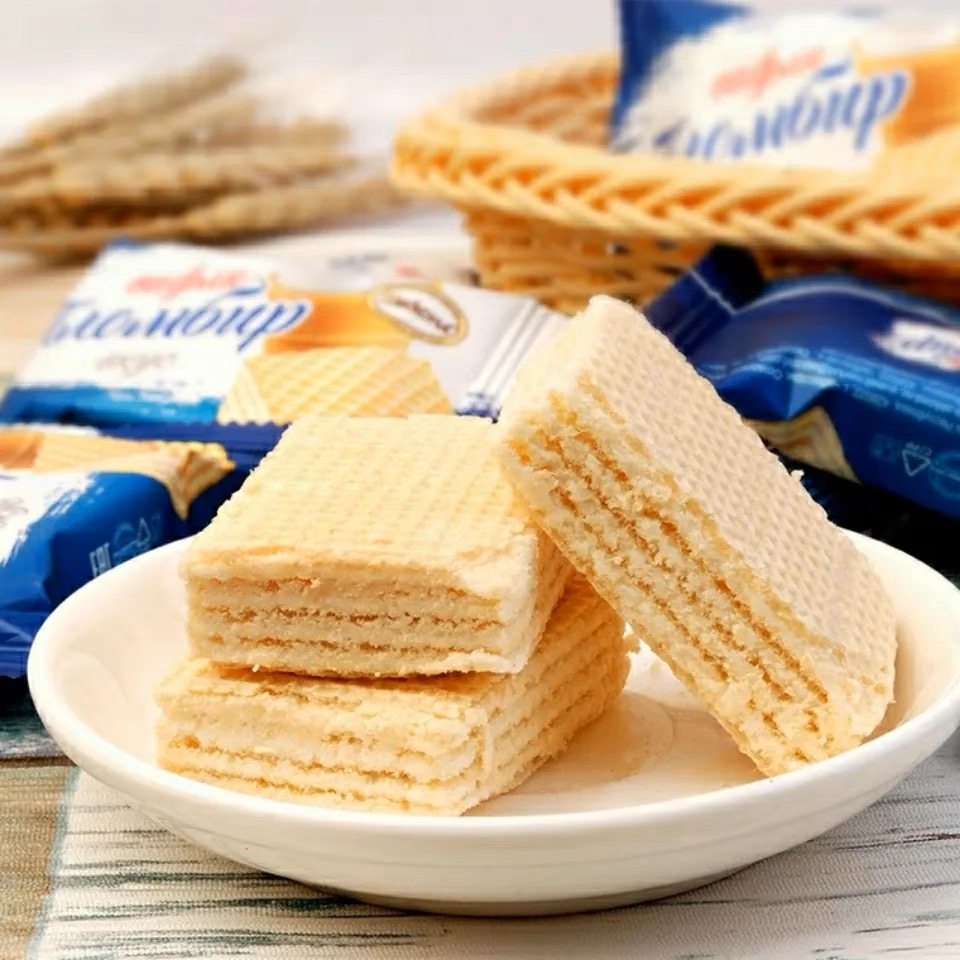 俄罗斯威化饼干进口食品阿孔特牌冰淇淋味奶酪味酸奶味牛奶味威化