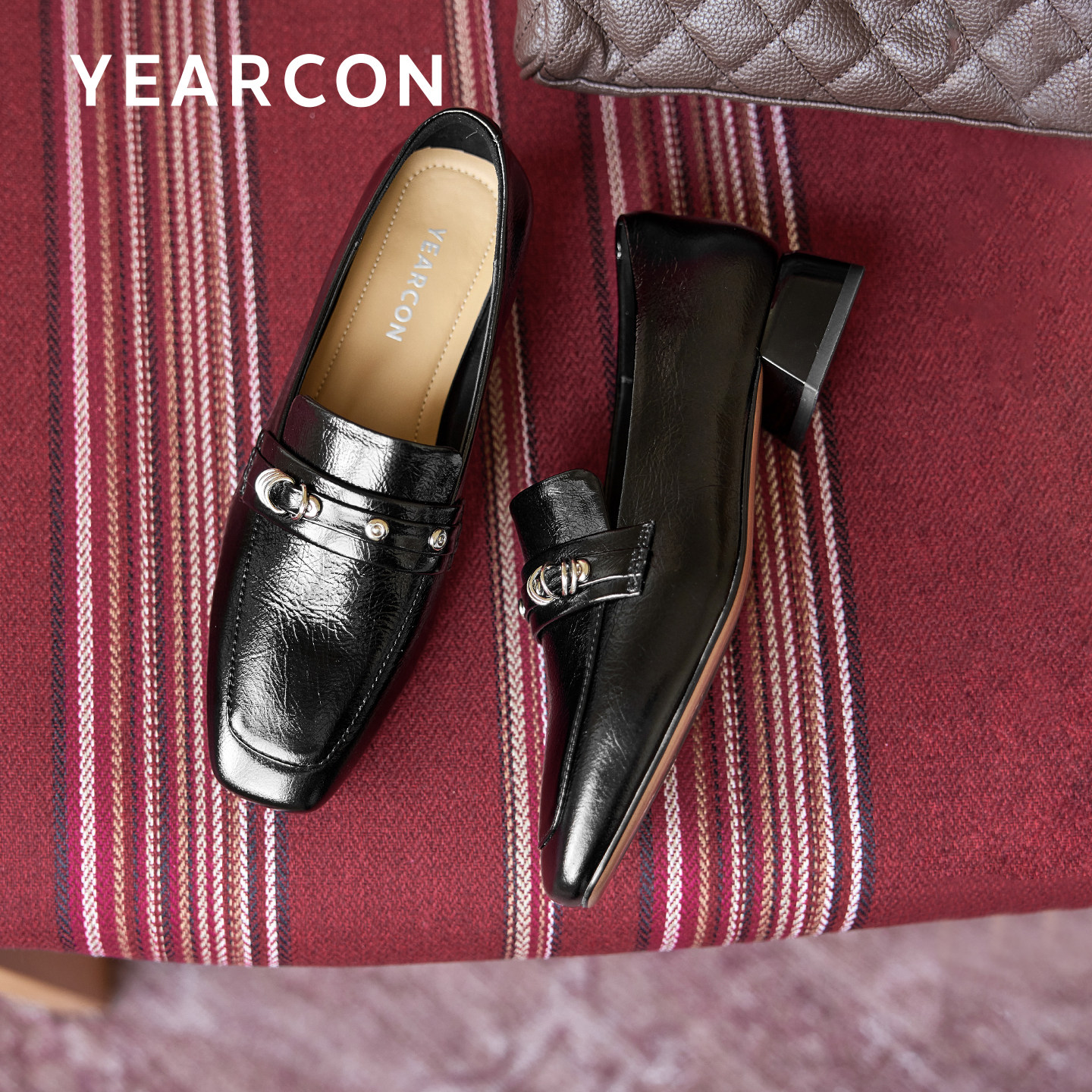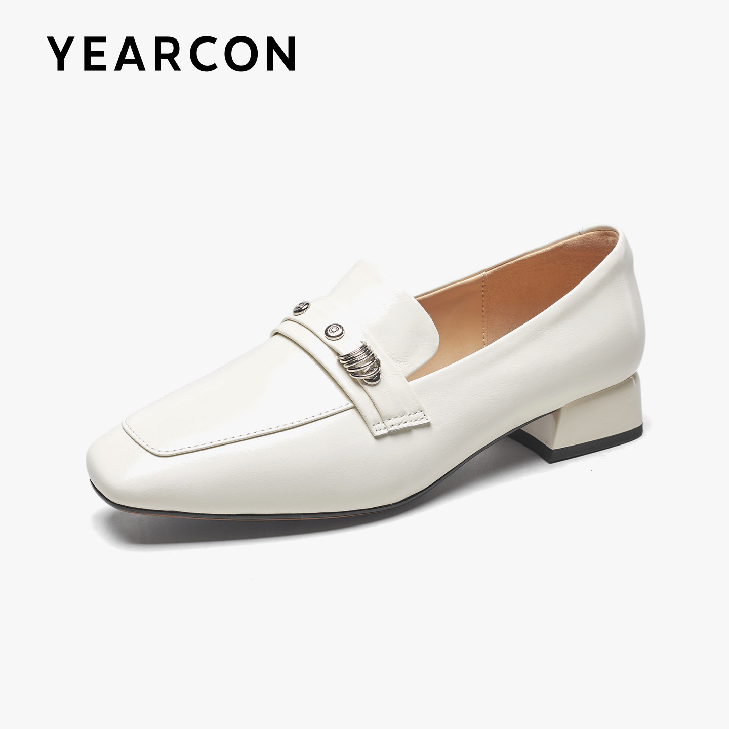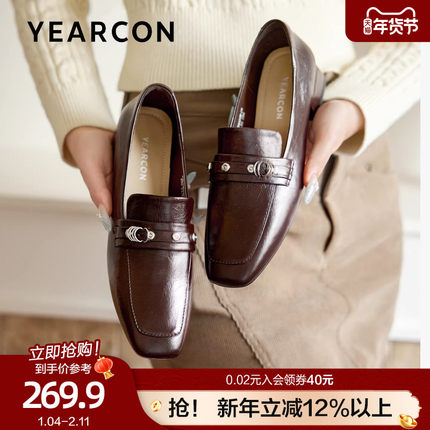 意尔康真皮乐福鞋女老钱风2026春季新款粗跟配裙子一脚蹬皮鞋单鞋