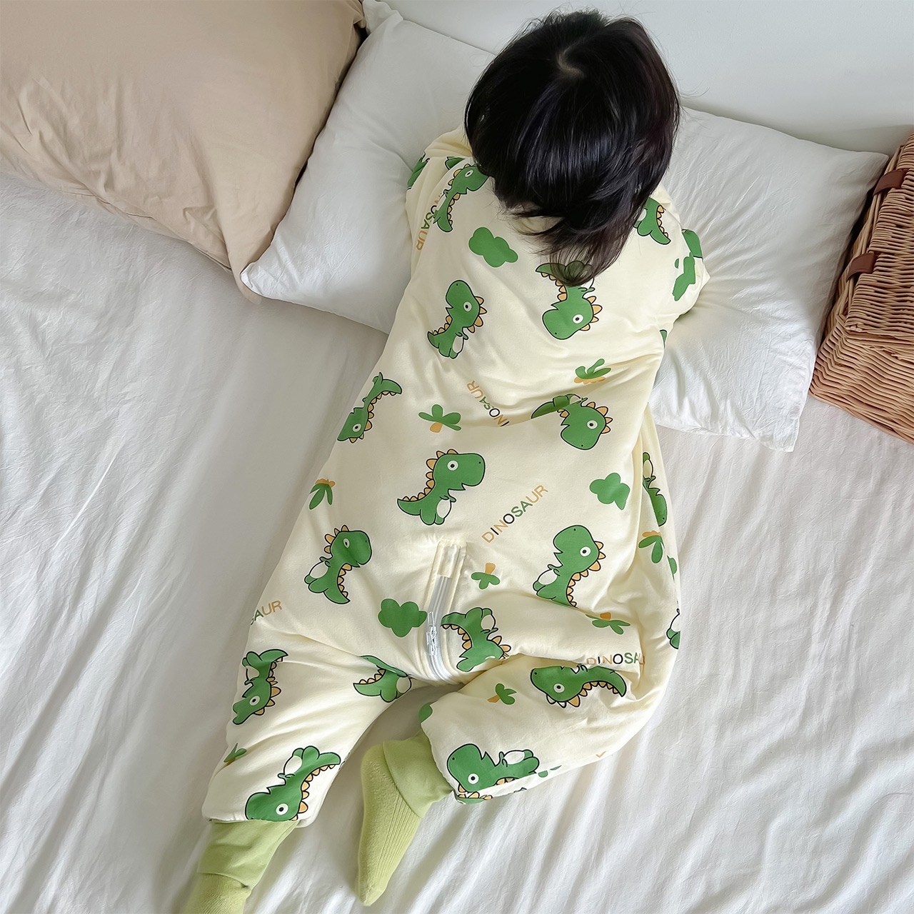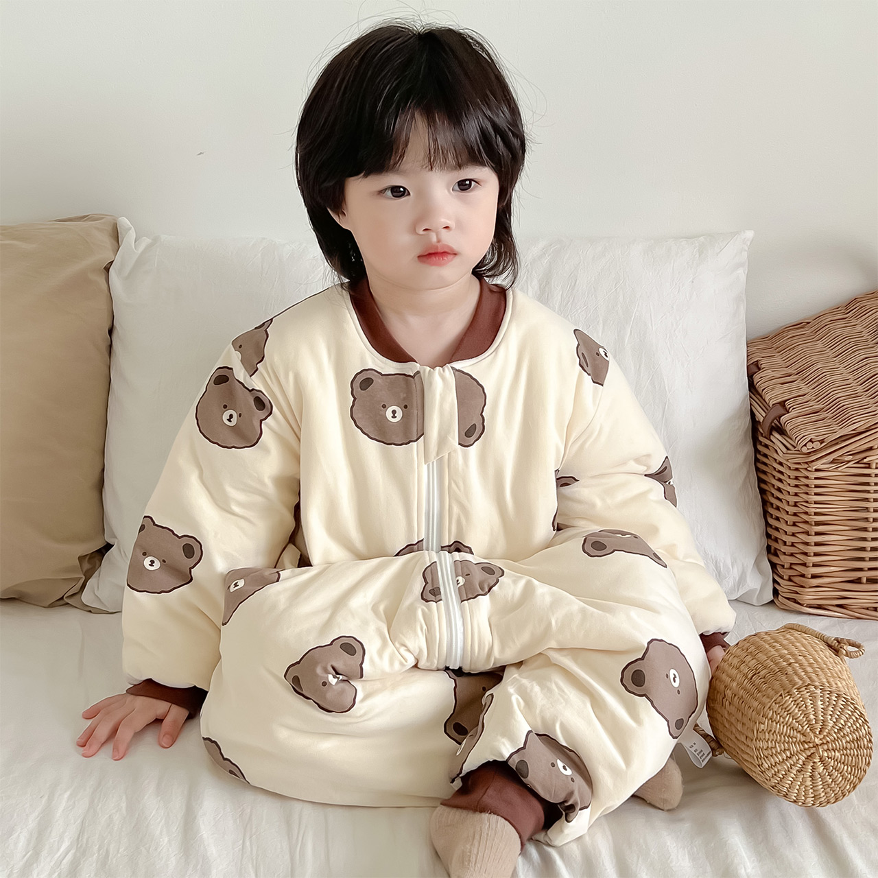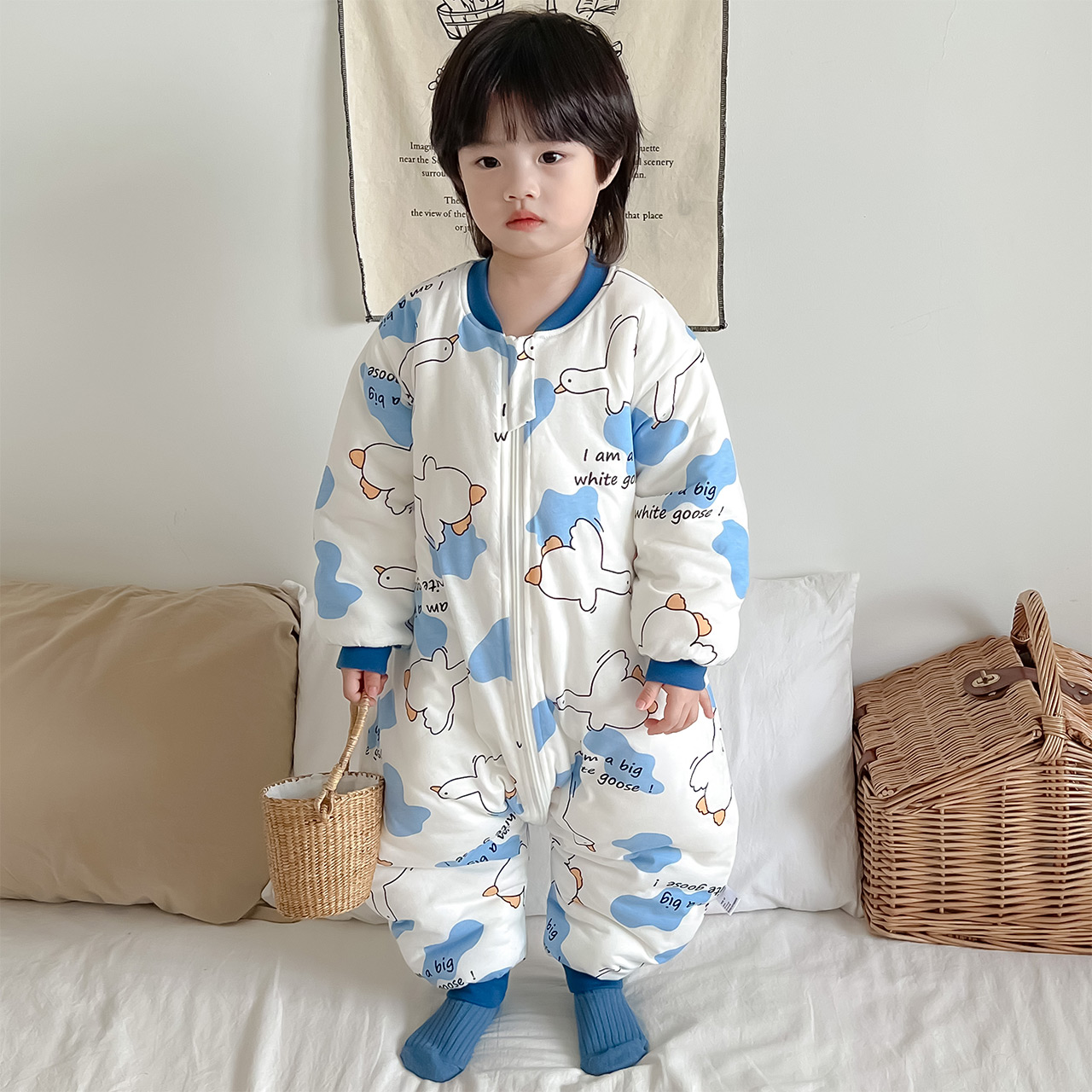 宝宝连体睡衣秋冬款加厚夹棉儿童连身衣纯棉防踢被男女童冬季睡袋