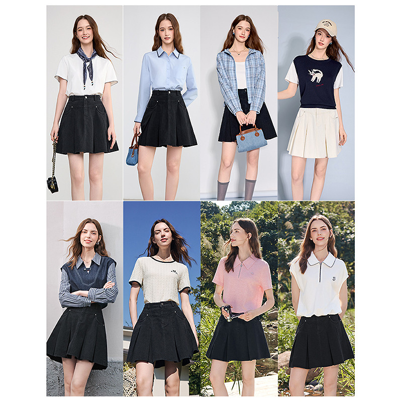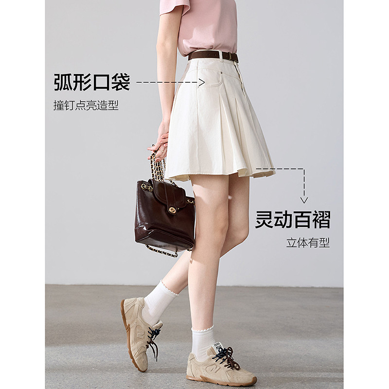 betu百图学院风减龄百褶高腰半身裙女2026年春季新款显瘦A字裙