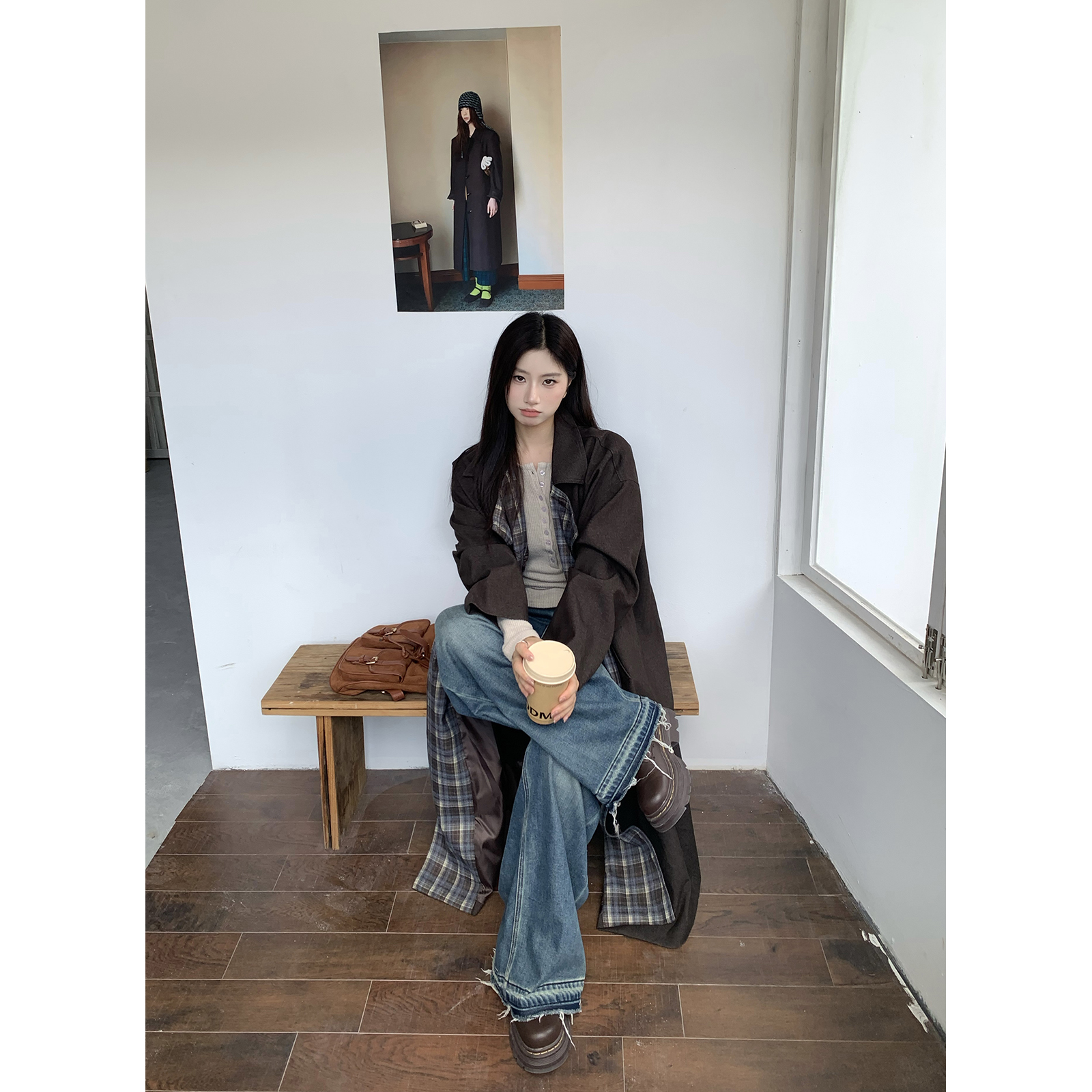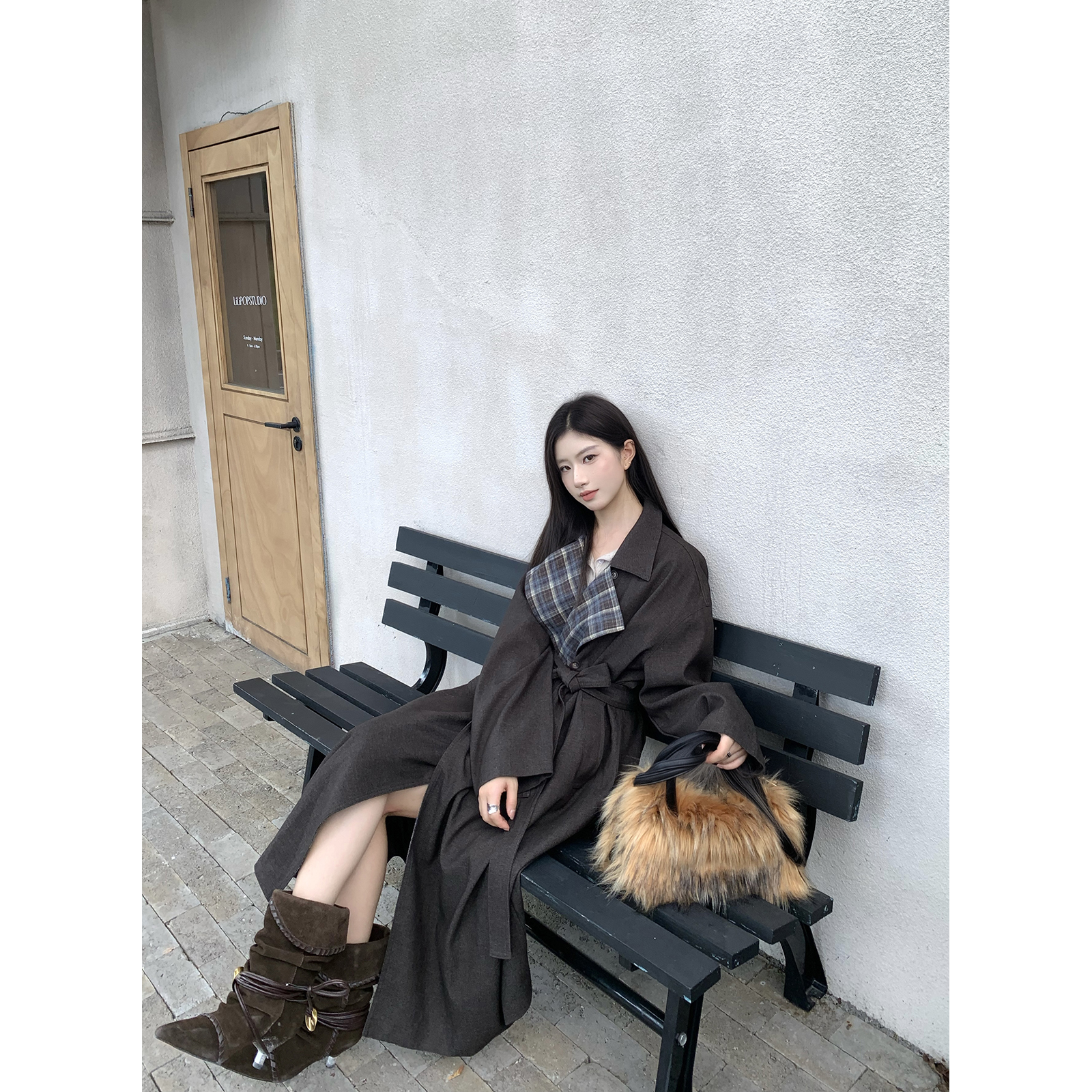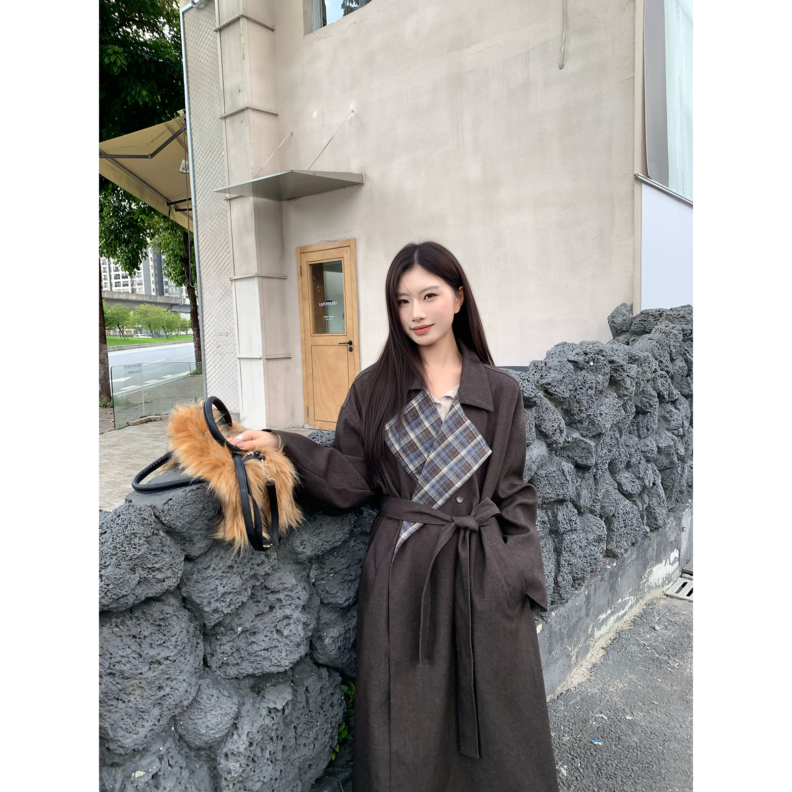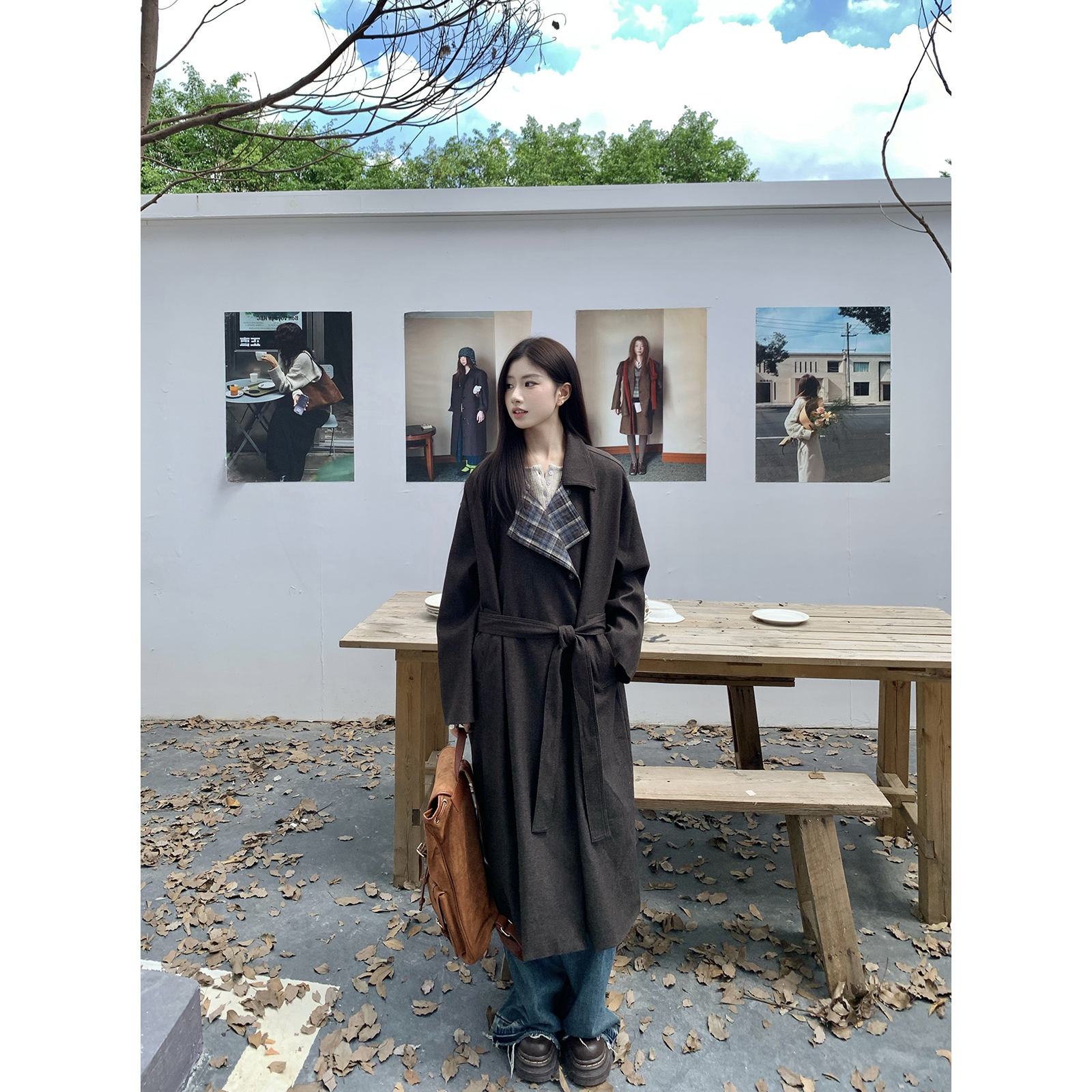 Joeyoo秋冬新款宽松系带毛呢外套女中长款过膝加厚保暖呢子大衣潮