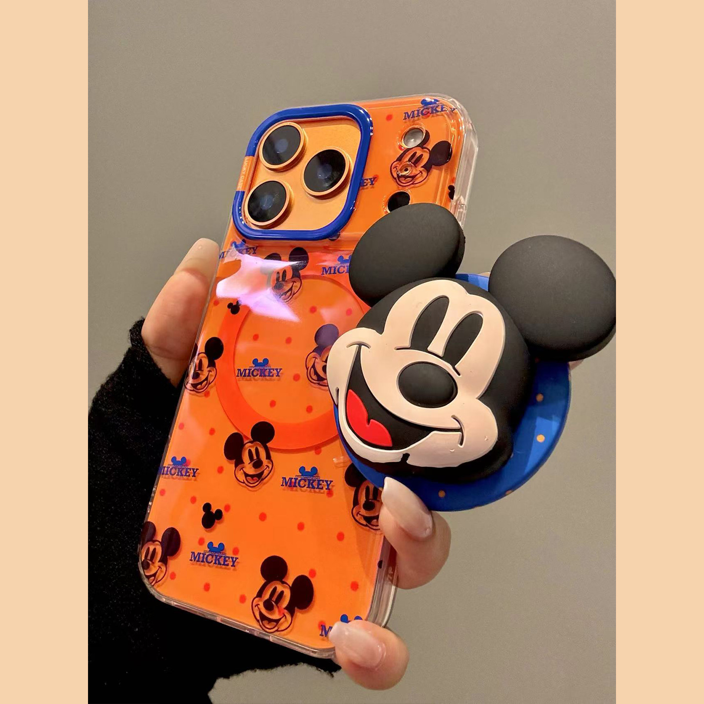 MoreRex 童趣卡通可爱橙色米奇磁吸支架适用苹果17手机壳iphone16promax新款15/14防摔保护套13趣味17pro女款