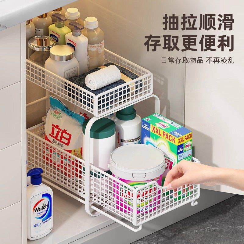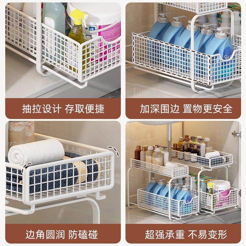 卫生间下水槽置物架抽拉式浴室洗漱台下橱柜拉篮柜子内收纳分层架