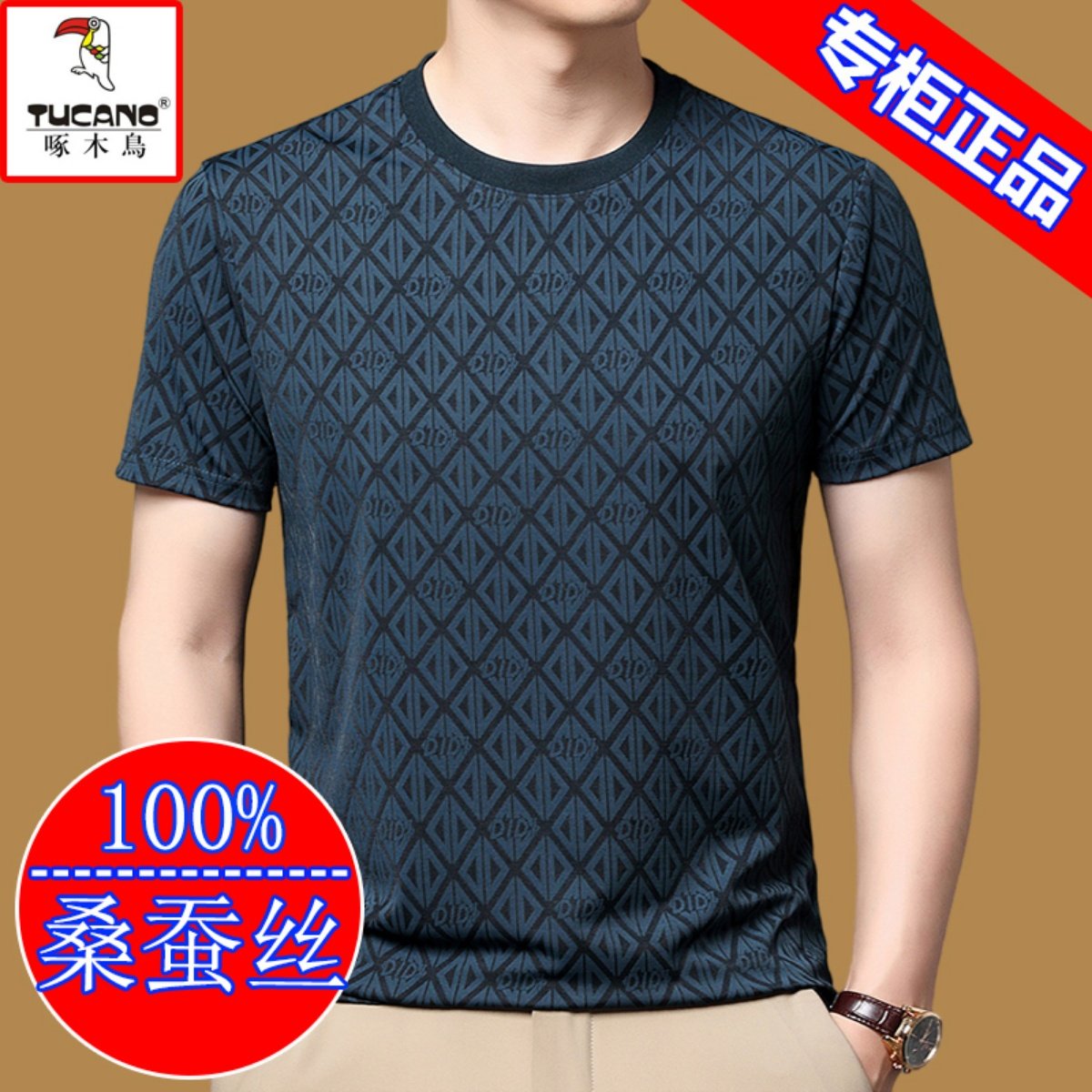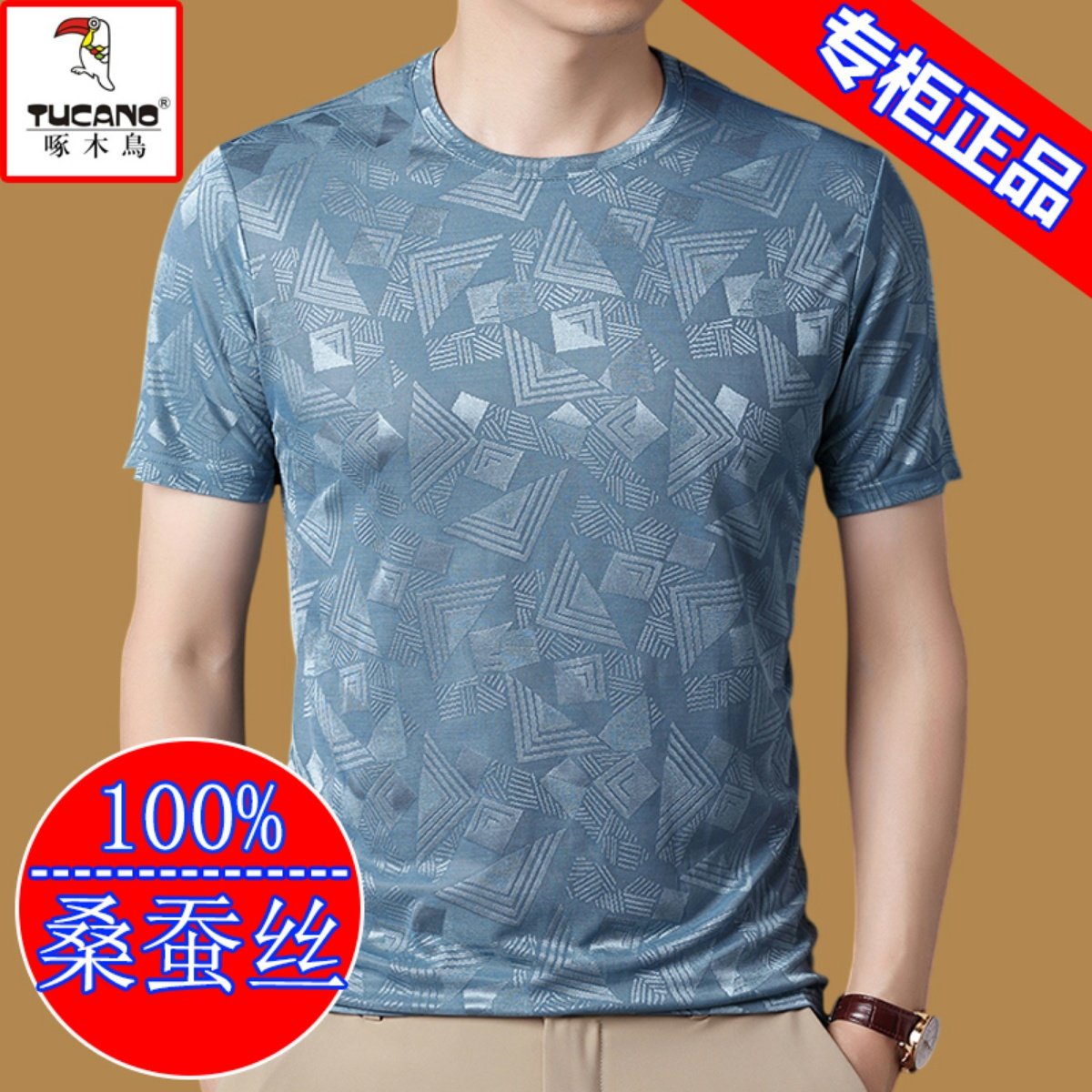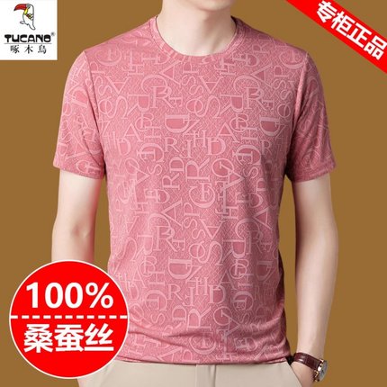 啄木鸟冰丝短袖t恤男夏季圆领桑蚕丝打底衫上衣男士宽松半袖体恤T