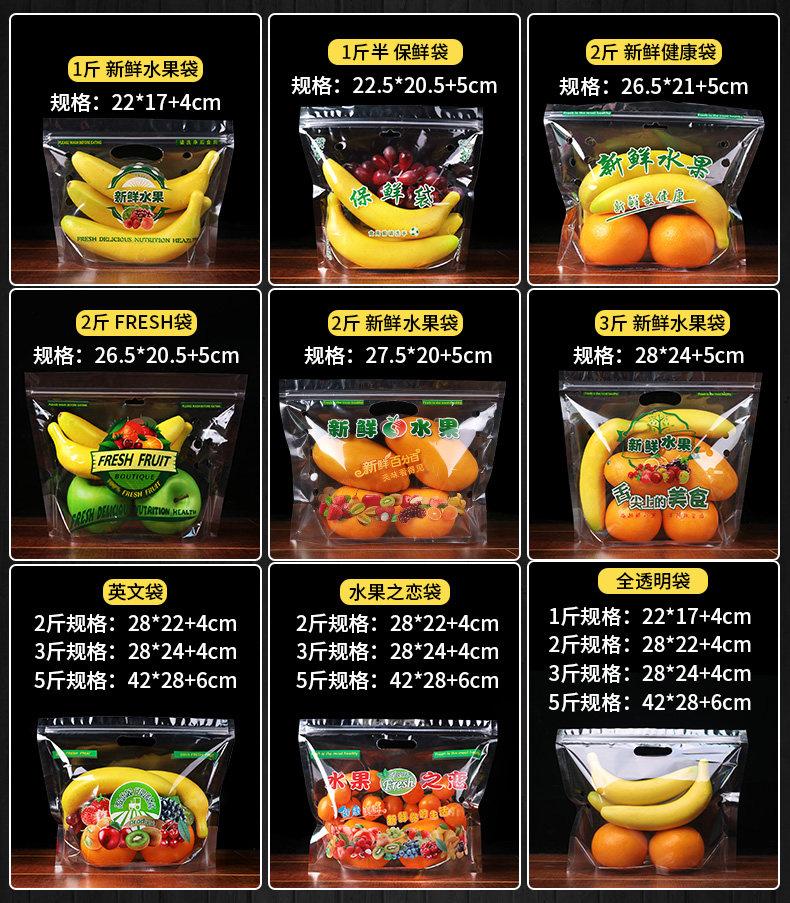 水果袋保鲜袋加厚透明自封手提透气孔车厘子提子塑料包装袋子定制