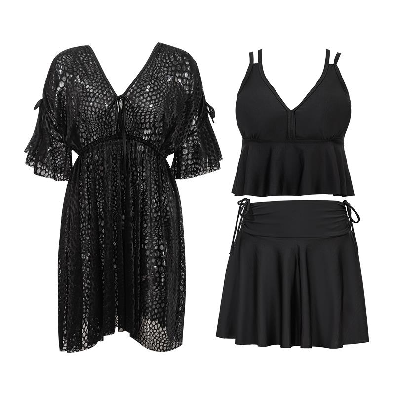 大码微胖m遮肚显瘦泳衣女200斤分体裙式三件套衫泡温泉泳装1005c